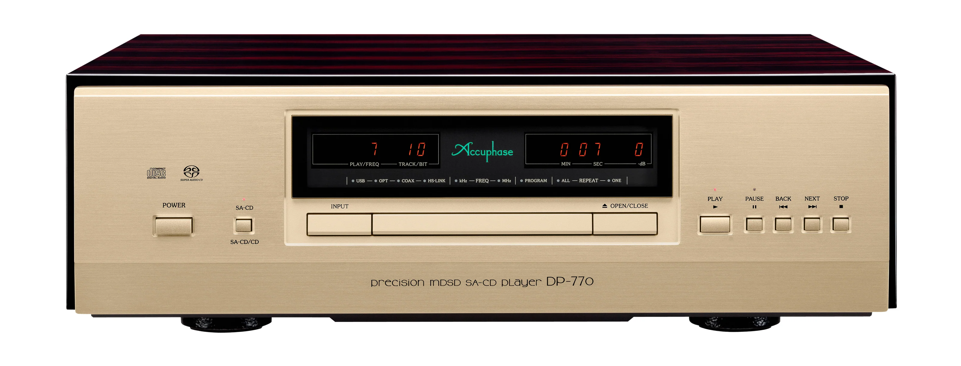 Accuphase DP-770 je precízny SA-CD/CD prehrávač najvyššej triedy, navrhnutý pre maximálne stabilné čítanie diskov a referenčnú digitálno-analógovú konverziu. Konštrukcia je zameraná na potlačenie vibrácií a šumu, aby bol dosiahnutý čo najčistejší signál pri prehrávaní SA-CD, CD aj dátových diskov.