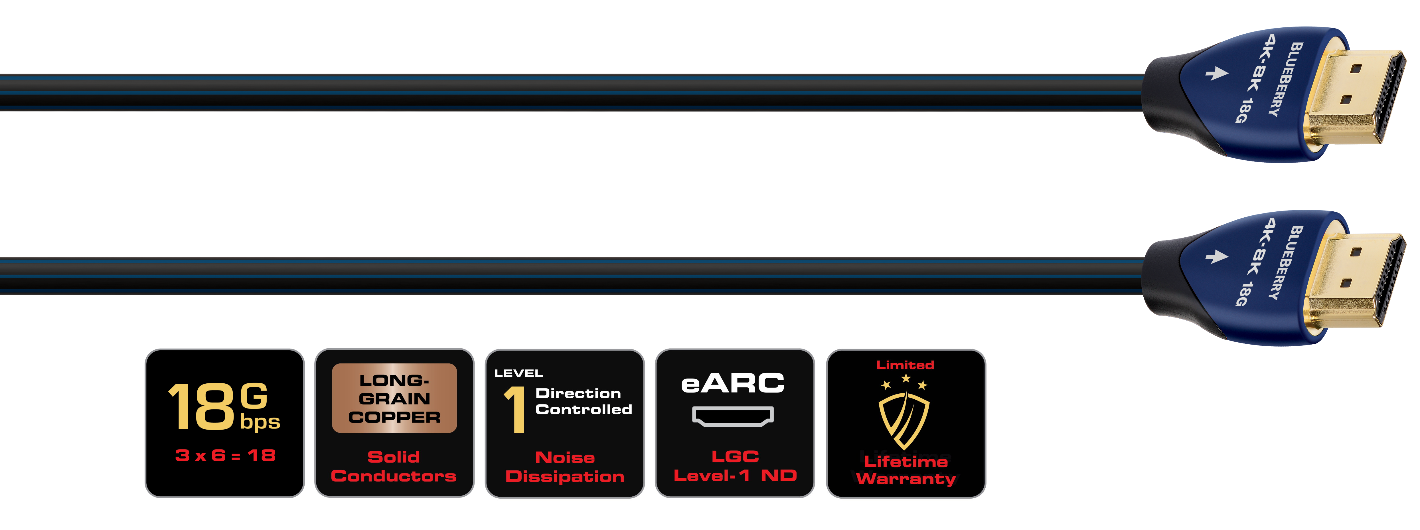 HDMI kábel AudioQuest BLUEBERRY je schopný prenášať video s rozlíšením až 8K. Rýchlosť prenosu dát 18 Gb/s umožňujú štyri symetrické páry audio/video vodičov. Táto najnovšia technológia tak plne vyhovuje nielen existujúcim 4K displejom , ale je schopná bez problémov prenášať video s rozlíšením až 8K s obnovovacou frekvenciou 30 snímok za sekundu (8-bit, 4:2:0, rozlíšenie 7680 x 4320 = viac ako 33 miliónov pixelov), vrátane HDR (vysoký dynamický).