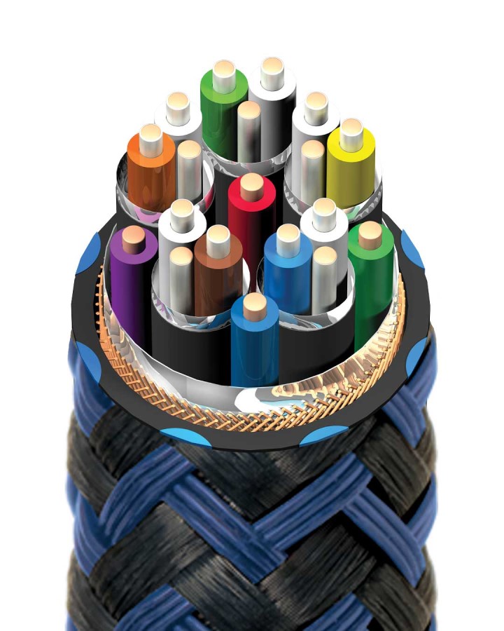 • Účinný systém pre rozptýlenie šumu a vysokofrekvenčného rušenia - ÚROVEŇ 3 - okolo každého zo 4 párov FRL a eARC vodičov je 1 tieniaca vrstva z kovu a 1 tieniaca vrstva z uhlíka