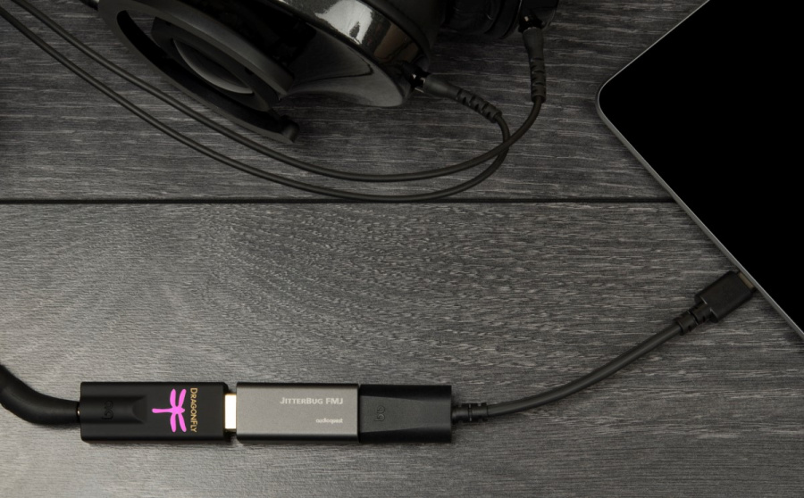 Nepatrne väčší ako JitterBug FMJ je digitálny audio prevodník a slúchadlový zosilňovač DragonFly s integrovaným analógovým ovládaním hlasitosti. DragonFly má USB konektor na jednej strane a na druhom konci 3,5 mm minijack. Je možné ho pripojiť na akýkoľvek Mac® alebo PC s Windows® a obchádzaním ohrozených zvukových obvodov počítača zaistiť čistejší, jasnejší a prirodzene detailnejší zvuk do pripojených slúchadiel, napájaných stolných reproduktorov alebo kompletného audio systému. Zapojte JitterBug FMJ v sérii pred DragonFly prevodník pre ďalšie zníženie šumu a nežiaduceho rušenia.