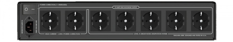 Pre pripojenie DAC prevodníka a/alebo univerzálneho prehrávača v jednej izolovanej skupine, predzosilňovača a gramofónu v inej skupine, ale aj pre pripojenie ďalších digitálnych zariadení a video produktov, ponúka Niagara 3000EU 5 zásuviek v dvoch oddelených skupinách so systémom Level-X Linear Noise-Dissipation (ultra-lineárny systém pre rozptýlenie). Tieto obvody nikdy netrpia aktuálnou kompresiou, ale ich nižšia vstupná úroveň a vyšší zisk vyžadujú robustnejší spôsob rozptýlenia šumu. Kľúčovou vlastnosťou diskrétnych AC zásuviek na jednotke Niagara 3000EU je, že sa s jednotlivými okruhmi nezaobchádza rovnako, ale každá skupina zásuviek je optimalizovaná pre najlepší výkon pripojených zariadení.