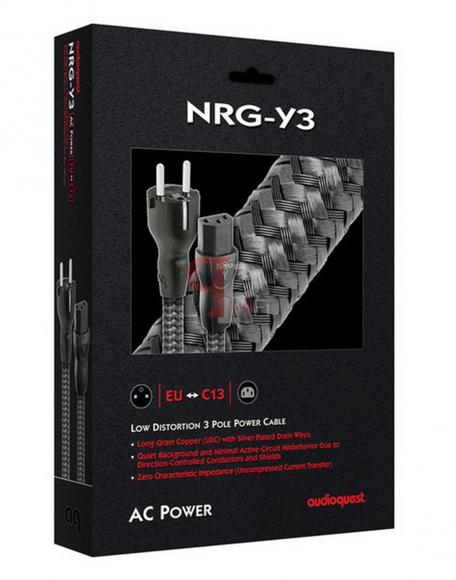 Napájacie káble NRG-Y3 používajú polotuhé vodiče s dlhým zrnom (LGC) v sústrednom usporiadaní, v ktorom sú jednotlivé medené pramene tesnejšie zabalené a nikdy nemení pozíciu vo vnútri zväzku. Táto konštrukcia výrazne znižuje skreslenie interakcií vlákna. Vyššia čistota a jednotnejšia štruktúra medi s dlhým zrnom ďalej znižuje skreslenie. Okrem toho striebrom potiahnuté konektory radu NRG-Y3 účinne odvádzajú RF šum do zeme.