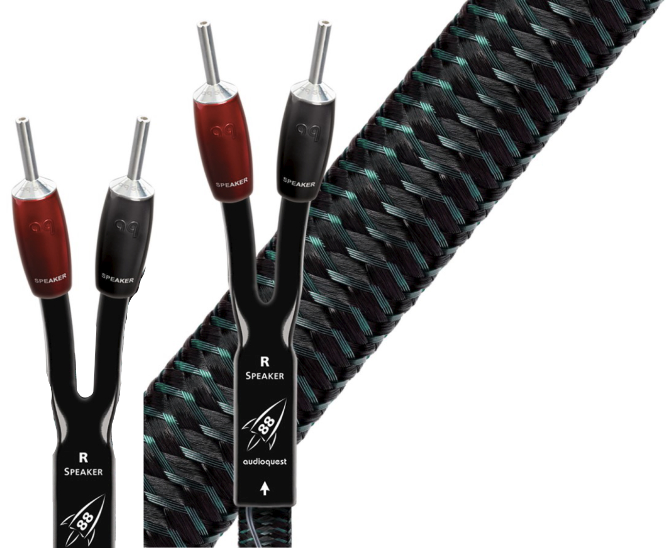 Audioquest Rocket 88 je sada high-endových excelentných reproduktorových káblov s priemerom 13 AWG (2,63 mm²) v prevedení využívajúce patentovaný Dielectric-Bias Systém (DBS) a nahrádza meď s dlhými zrnami (LGC) pevnými medenými vodičmi s perfektným povrchom (Perfect-Surface Copper +). Vďaka použitiu systému DBS ponúka kábel nižší prah šumu, takže sa môžete ponoriť hlbšie do detailov Vašej obľúbenej hudby. Použitie PSC+ potom zaistí plynulejšie, prirodzené vyznenie zvuku.
