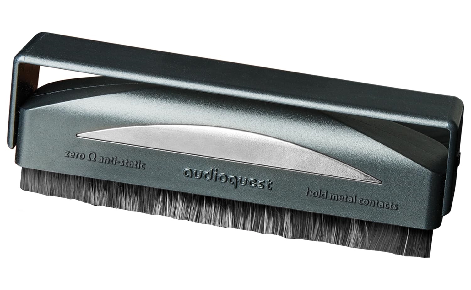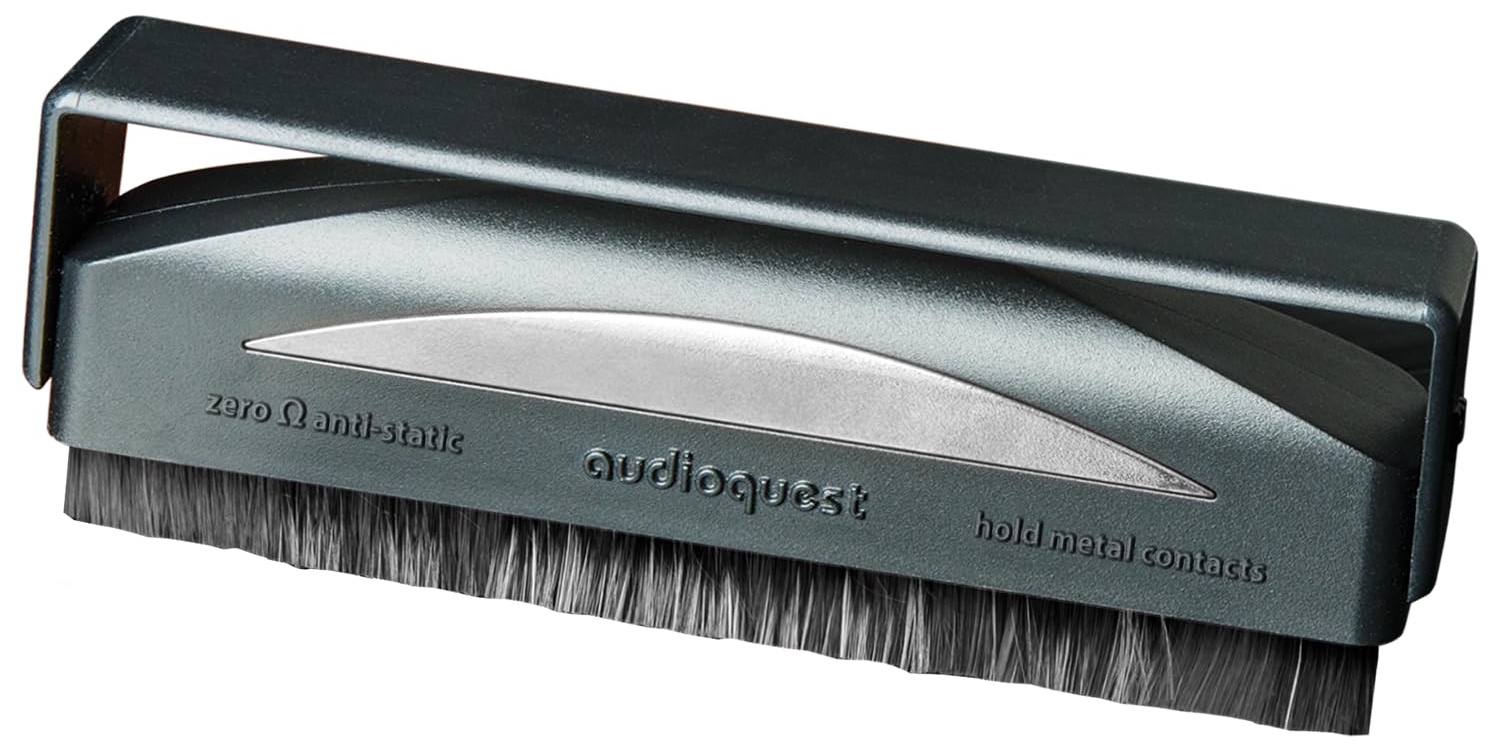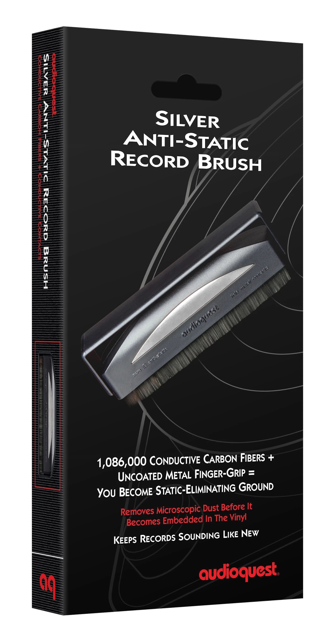Nová kefka AudioQuest SILVER ANTI STATIC RECORD BRUSH prichádza so zásadnou inováciou. Predchádzajúce modely (vrátane konkurenčných výrobcov kefiek z uhlíkových vlákien) nedokázali dostatočne dobre odolávať statickej elektrine, pretože kovová rukoväť vytvárala elektrické pripojenie k ruke používateľa. Užívateľ je „krajinou“ statickej elektriny, preto je nevyhnutný dobrý elektrický kontakt od vlákien až k ruke!