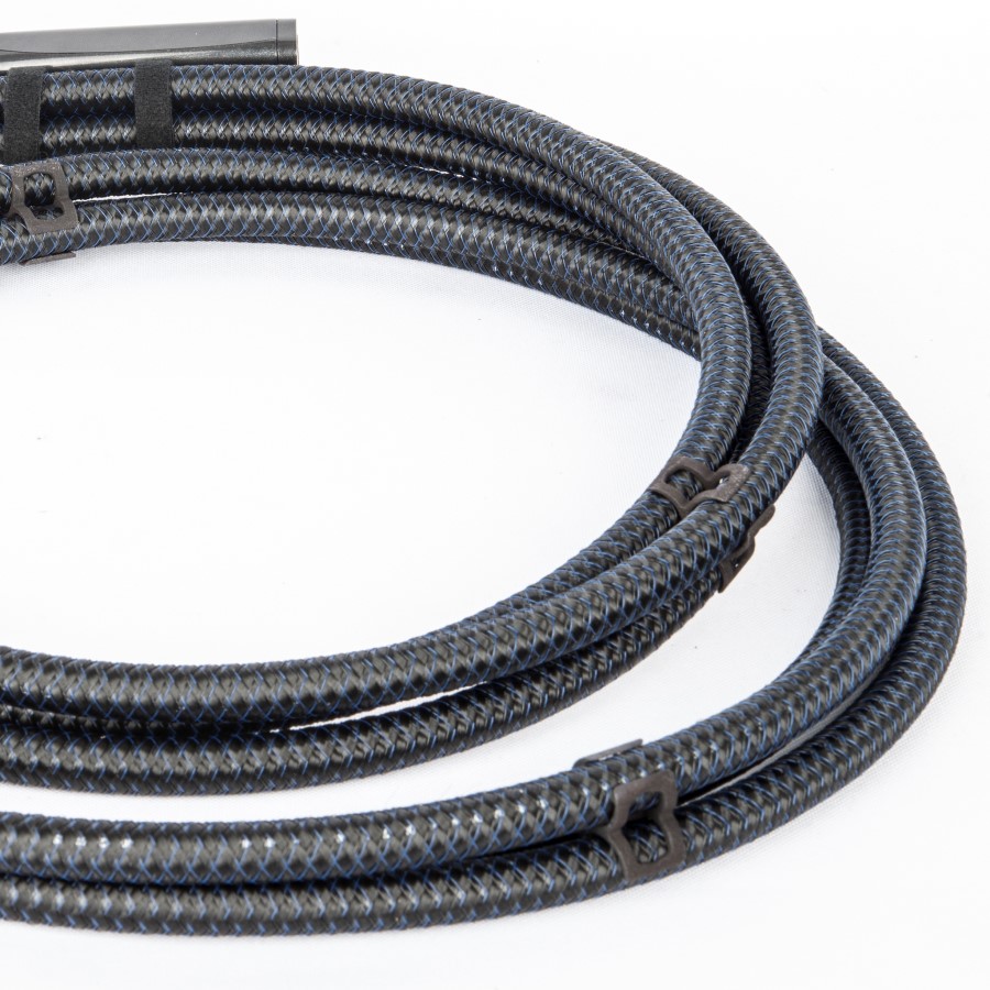 HURRICANE s čierno-červeným opletením. Najvyššie postaveným káblom z radu je čierny DRAGON . Pri konektore drahších modelov použil AUDIOQUEST strieborné kontakty.