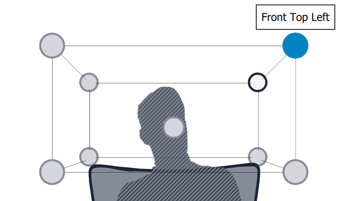 10) Prvá focus-pozícia (resp. referenčná pozícia poslucháča) je pre meranie najdôležitejšia. Položte mikrofón presne tam, kde sa bude nachádzať vnútorný stred hlavy poslucháča. Pokiaľ viete, že poslucháč bude sedieť pri počúvaní hudby s opretou hlavou, tak to nezabudnite zohľadniť.