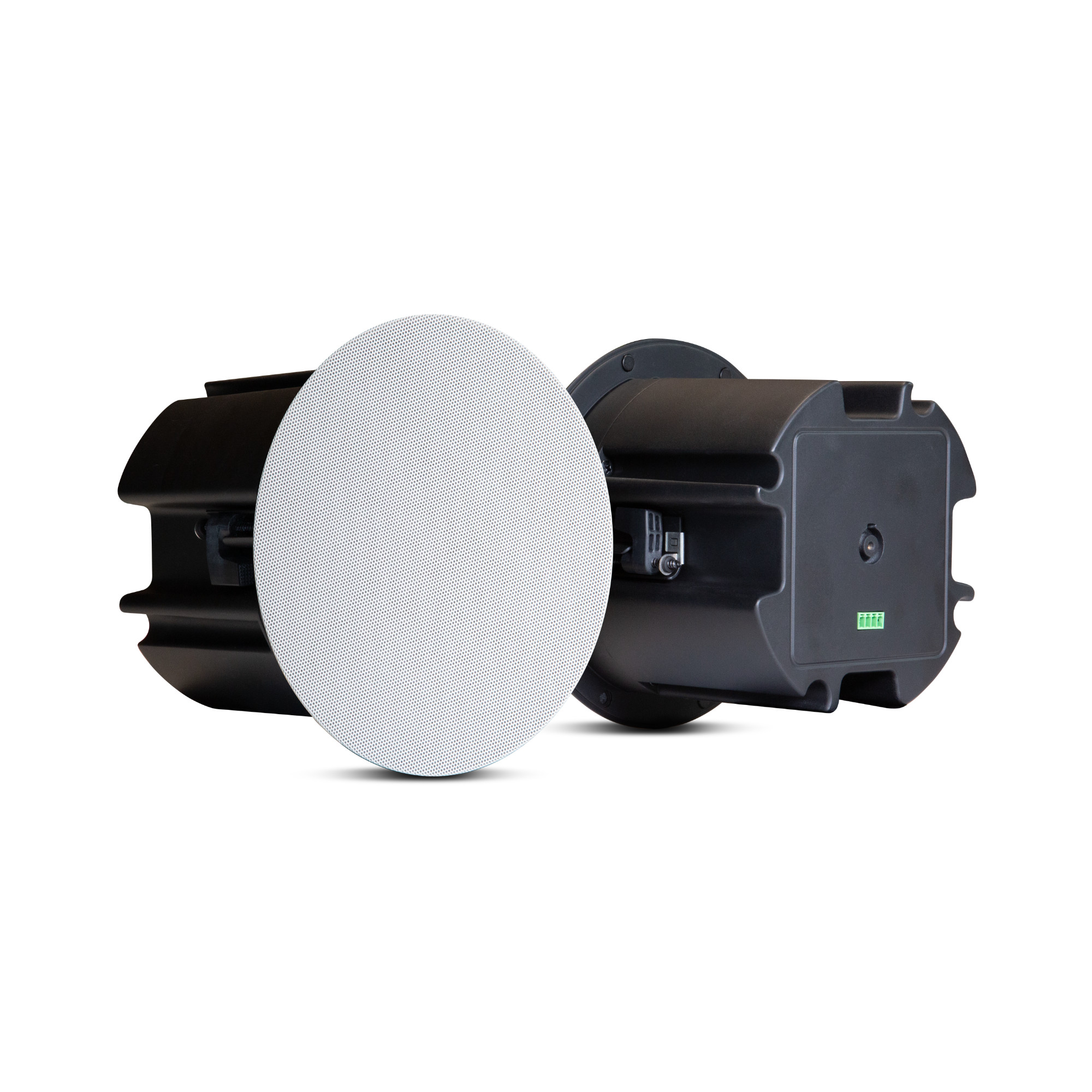 Pasívny inštalačný reproduktor do stropu, ktorý je možné transformovať do závesného modelu. Bluesound Professional BCS250 je možné ľahko integrovať do akéhokoľvek interiéru – či už zapustiť do stropu, alebo jednoducho transformovať na závesný reproduktor pomocou voliteľnej súpravy na zavesenie Bluesound Professional Pendant Kit. Samotnú reprodukciu zaistí 89 mm stredobasový a 25 mm výškový menič s vyladenou výhybkou pre rovnomerné podanie celého frekvenčného pásma. 150 stupňové vyžarovanie kónického tvaru sa postará o rovnomerné pokrytie celej miestnosti. BCS250 bol špeciálne navrhnutý pre situácie vyžadujúce nízku impedanciu a konštantné napätie – ideálny pre reťazové zapojenie reproduktorov. Prepracovaná konštrukcia a odolné telo s certifikáciou UL 2043 robí tento model ideálnym riešením pre komerčné stavby.