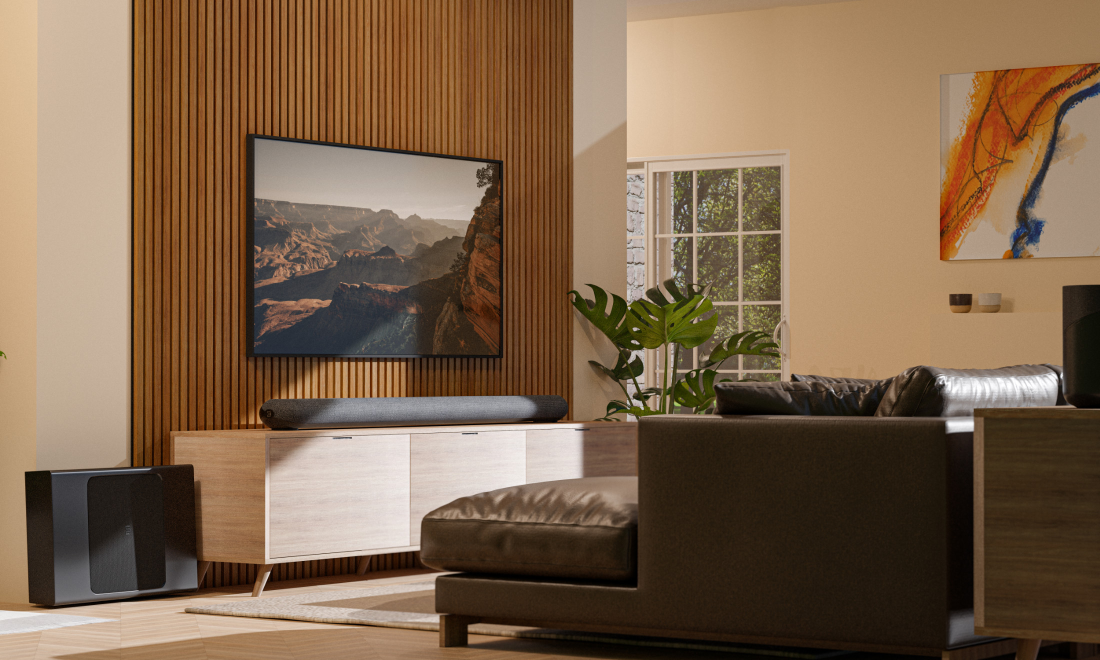 Štíhly tvar a prémiové spracovanie s látkovým poťahom zaručí, že PULSE CINEMA pôsobí rovnako dobre pod televízorom aj na stene. Je široký ako 55" TV, takže dokonale ladí s modernými obrazovkami. V balení navyše nájdete montážnu konzolu aj všetky potrebné káble.