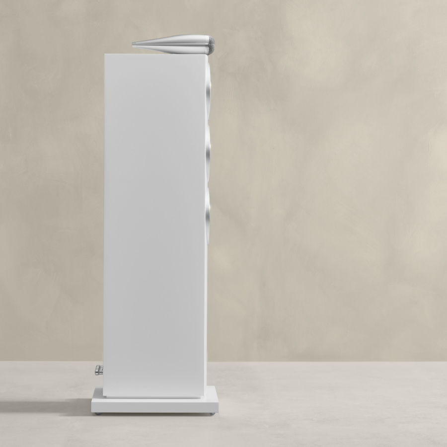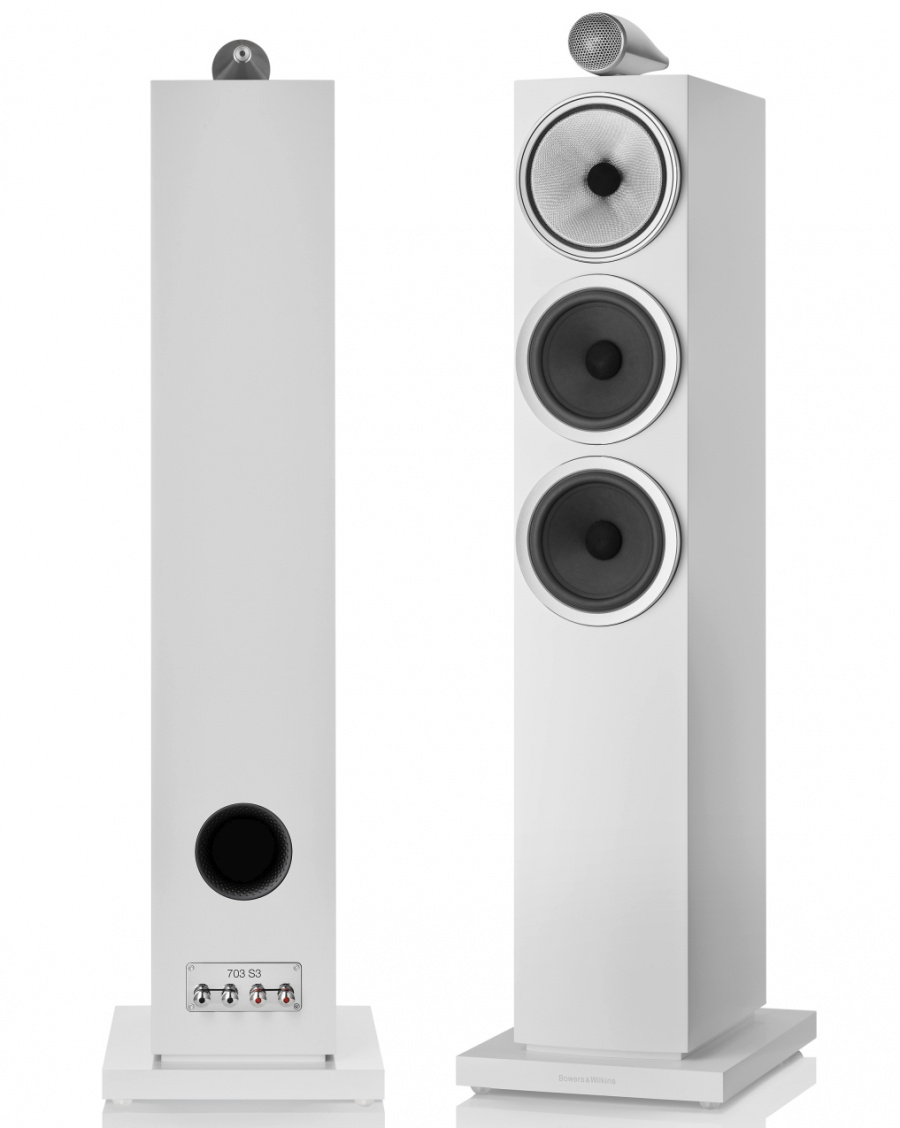 Výškový reproduktor 703 S3 s uhlíkovou kopulkou je umiestnený v úplne novej zostave výškového reproduktora Solid Body Tweeter a vďaka novému usporiadaniu portov smerom dole a trojici basových membrán s profilom Aerofoil poskytuje hlboké a nekonečne artikulované basy.