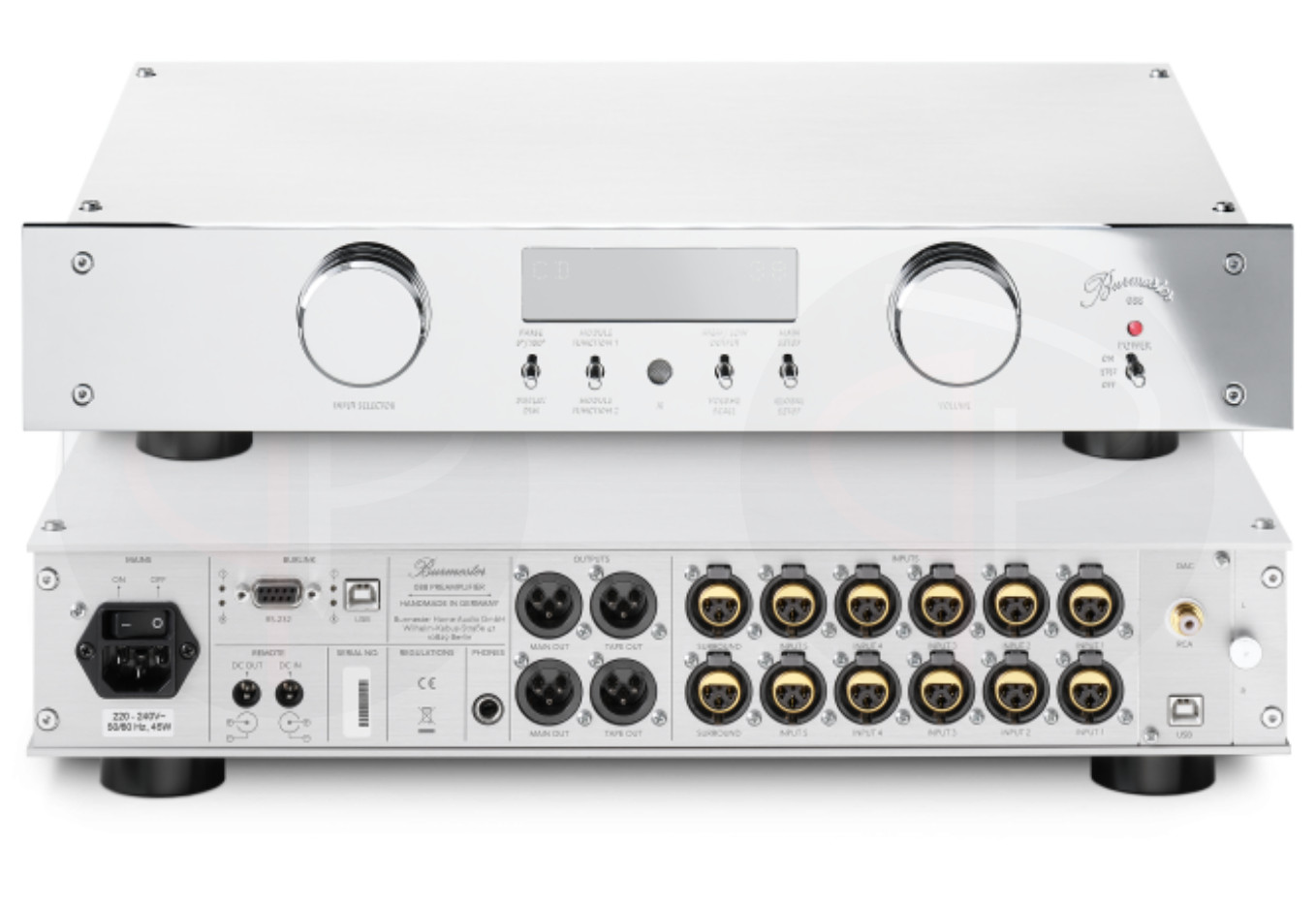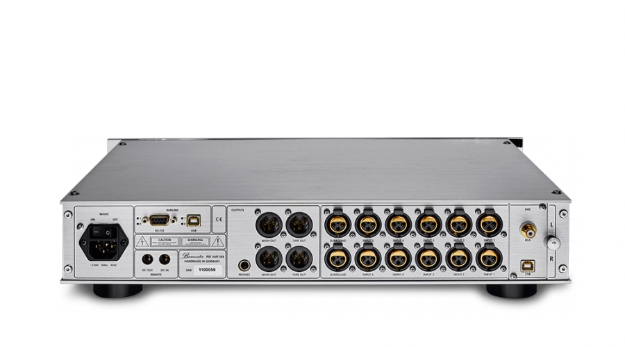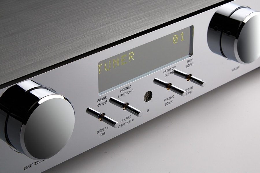 Predzosilňovač s dual mono koncepciou, vr. 1 voliteľného modulu DAC, Line, Phono MM alebo Phono MC; vstupy: 5x XLR, 1x Surround Thruput, 1x Modul