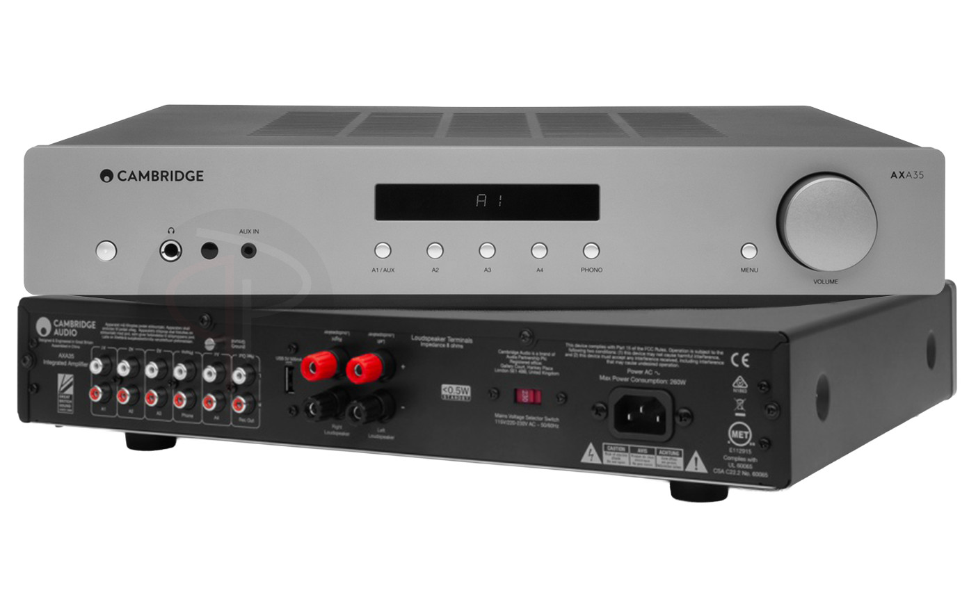 Stereofónny integrovaný zosilňovač AXA 35 ponúka výkon 2x 35W (do 8 Ω) a celkom šesť analógových vstupov. Štyri linkové RCA vstupy na zadnom paneli, jeden v stup pre MM a jeden 3,5 mm jack na prednom paneli, napríklad na pripojenie mobilného telefónu. Pre jeho nabíjanie je na zadnom paneli umiestnený USB konektor.