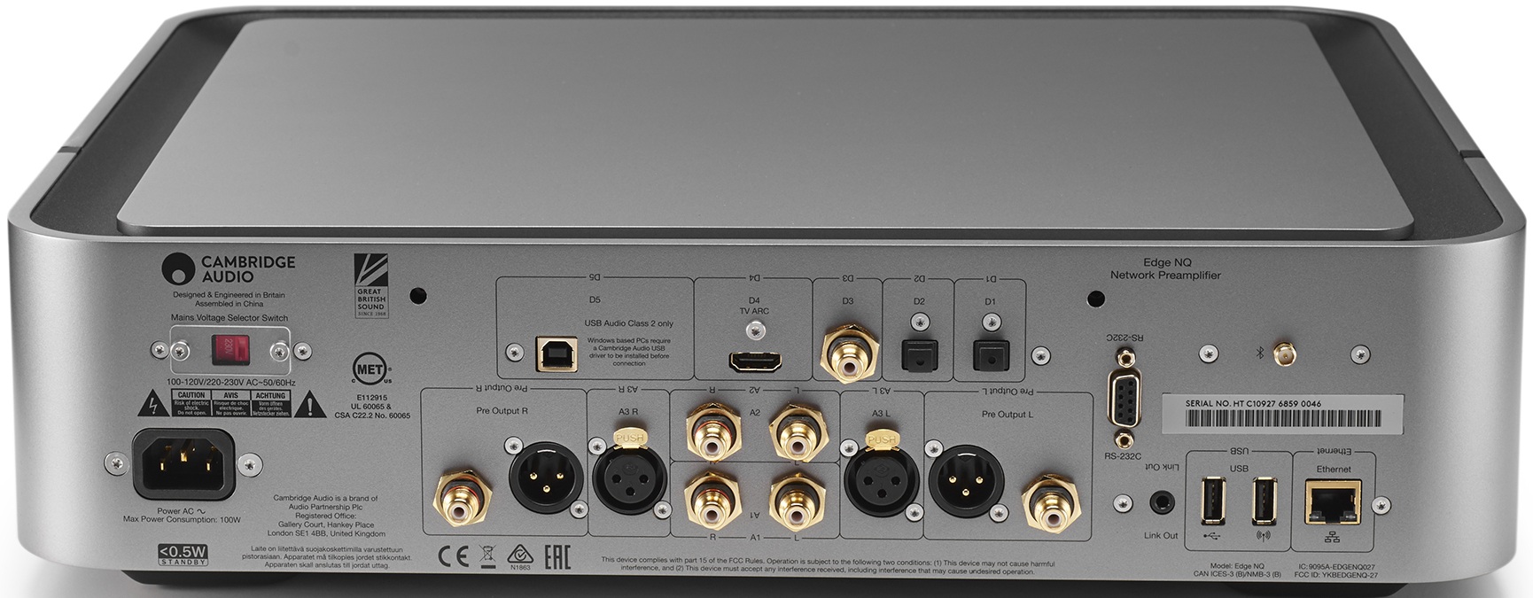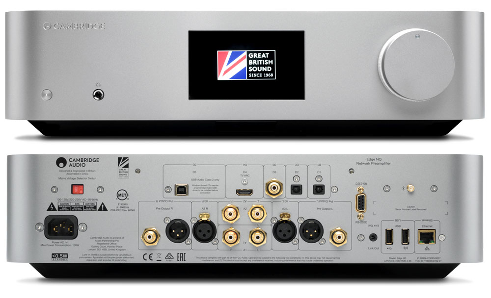 Inžinieri Cambridge audio nahradili konvenčné kondenzátory DC topológiou a taktiež pridali špičkovú reguláciu hlasitosti. Výsledkom je čistá dráha signálu , ktorá je dokonale vyvážená pri akejkoľvek hlasitosti. Edge NQ ponúka širokú škálu digitálnych vstupov vrátane HDMI, vstavanú podporu Chromecast, Spotify Connect a Tidal, Bluetooth aptX HD. Pre užívateľov iOS zariadenia je k dispozícii AirPlay. Pre prehrávanie z počítača je na zadnom paneli USB-B konektor, podporujúci formáty až do rozlíšenia 32bit/384kHz alebo DSD 256.