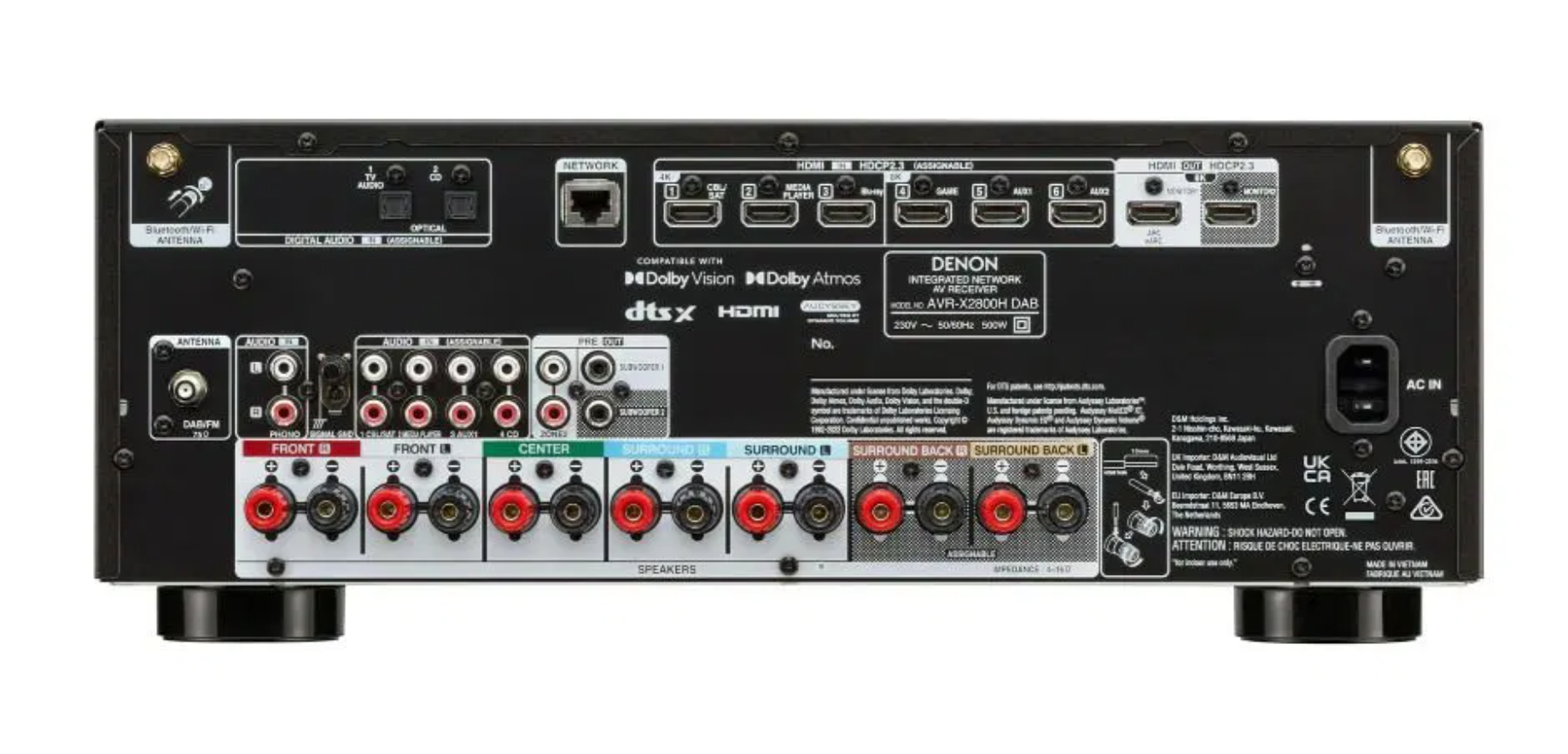 Podporuje najnovšie technológie na všetkých vstupoch a výstupoch HDMI. ARC (Audio Return Channel) alebo eARC (Enhanced Audio Return Channel) uľahčuje prehrávanie televízneho zvuku prostredníctvom AV receivera, a to iba pomocou jediného pripojenia HDMI. eARC umožňuje prenos HD a 3D zvuku, napríklad Dolby TrueHD, DTS HD Master Audio a Dolby Atmos, zatiaľ čo ARC je obmedzené na bežné 5.1 kanálové zvukové formáty alebo PCM.