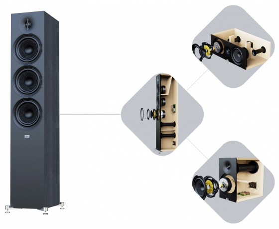 Všetky modely Debut 3.0 využívajú strategicky umiestnené vnútorné výstuhy spevňujúce konštrukciu skrine, účinne minimalizujúce rezonancie a nežiaduce vibrácie, čím zlepšujú čistotu a presnosť reprodukcie zvuku. Výsledkom je presnejšia reprodukcia zvuku, pretože je zaistené, že zvuk vychádza primárne z ovládačov reproduktorov.