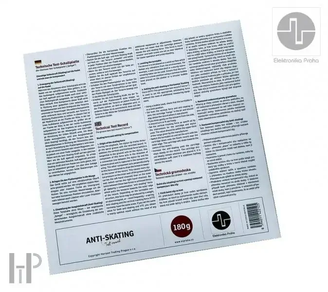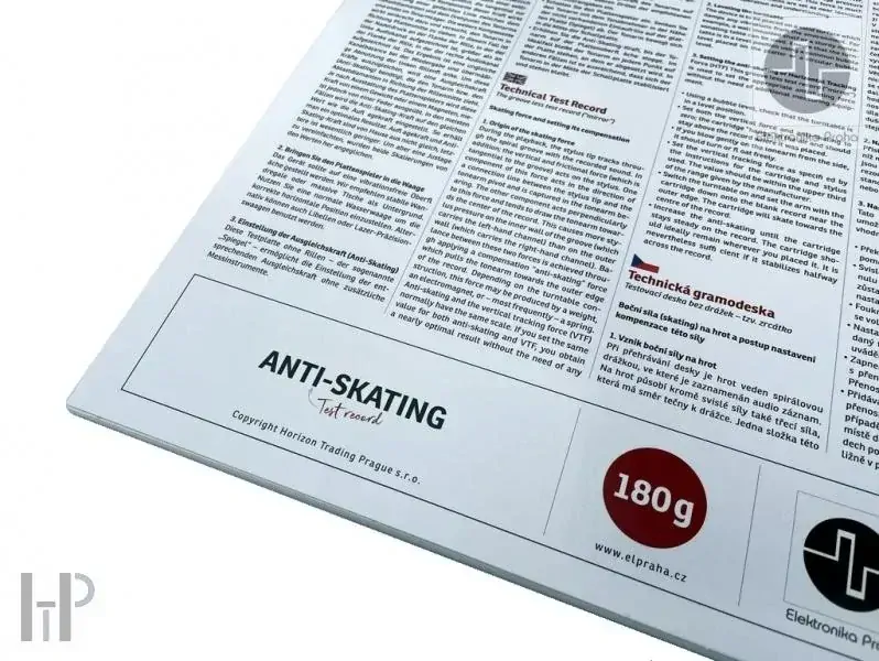 Najlepšou kontrolou správneho nastavenia bočnej sily na hrot je nastavenie pomocou Anti-skating TEST Record, ktoré je presné a užívateľsky jednoduché.