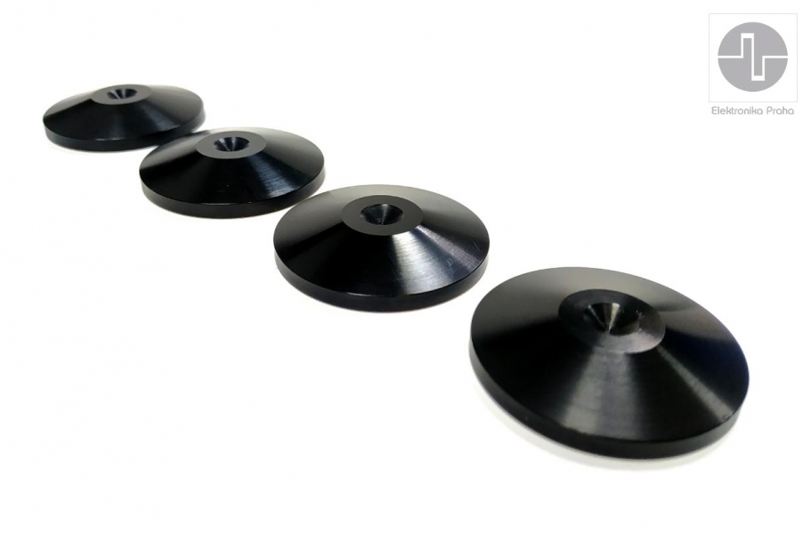 Univerzálne podložky pod odhmotňovacie hroty reprosústav a audio komponentov / 20mm / Alu: CD prehrávače, gramofóny, zosilňovače, reprosústavy.