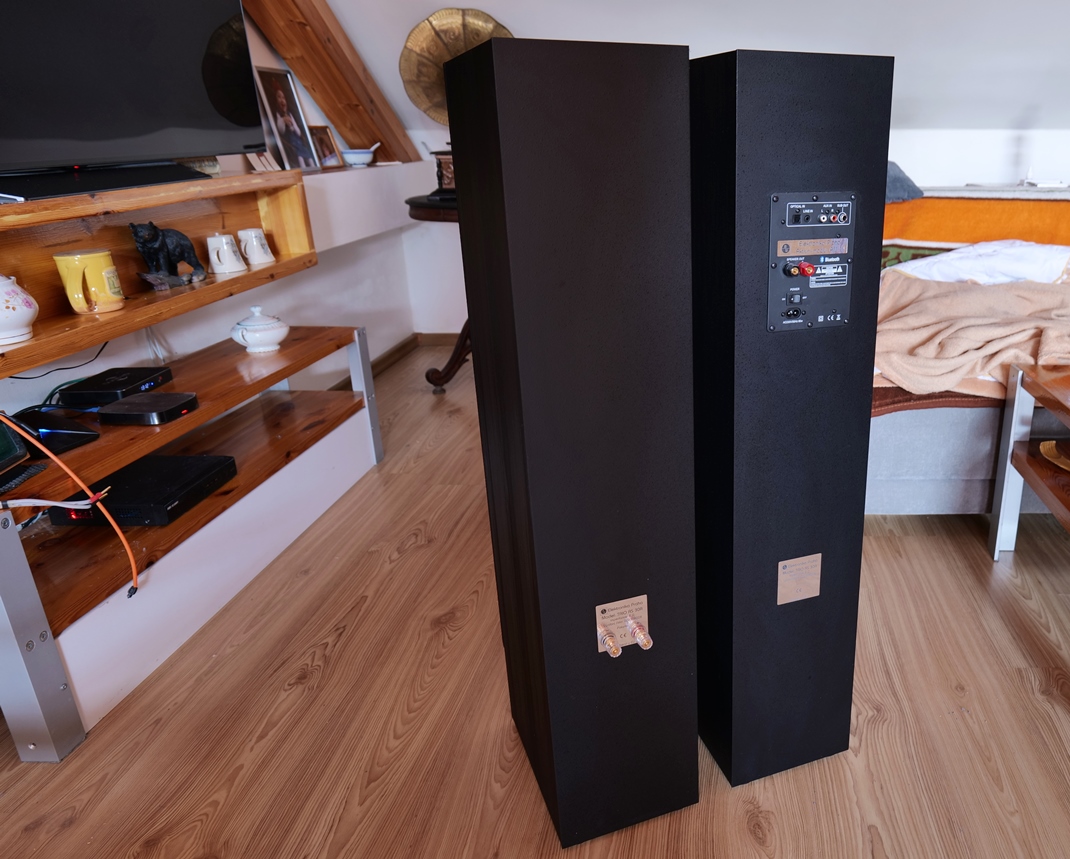 Analógový zosilňovač triedy D s výkonom 2 x 60W (8Ω) je kvalitnej výroby a drží sa vyššie spomínaného hesla - "najlacnejšie reprosústavy s najdrahším zvukom", tu rovno dovolím pretransformulovať na "najlacnejšie aktívne stĺpy s najdrahším zvukom".