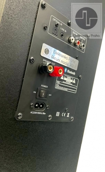 Jeden zo stĺpov má aktívny modul (zosilňovač triedy D). Ten je nutné zapojiť priloženým sieťovým káblom