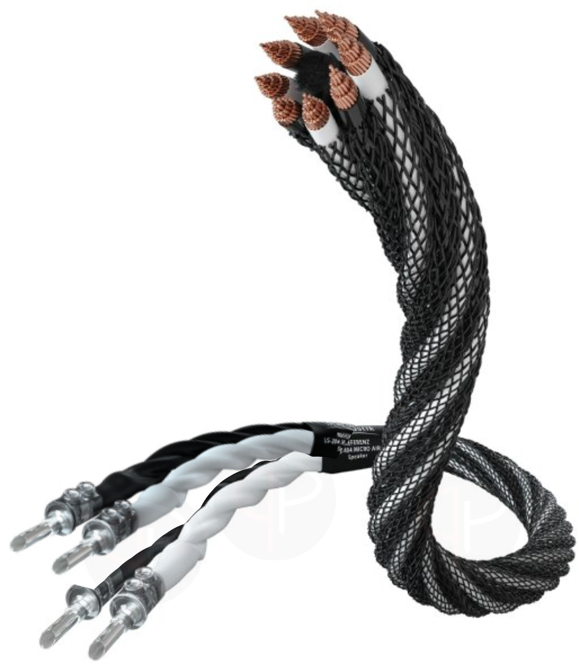 Vzhľadom k nízkym impedanciám reproduktorov sú však pre reproduktorové káble veľmi dôležité aj nízke odpory vedenia a nízka indukčnosť. Z tohto dôvodu je v kábli REFERENCE LS-404 MICRO AIR okrem vzduchového dielektrika použitých celkom 8 koncentrických medených vodičov. Vďaka tejto viacžilovej architektúre sa magnetické polia kladného a záporného vodiča prekrývajú a vzájomne neutralizujú.