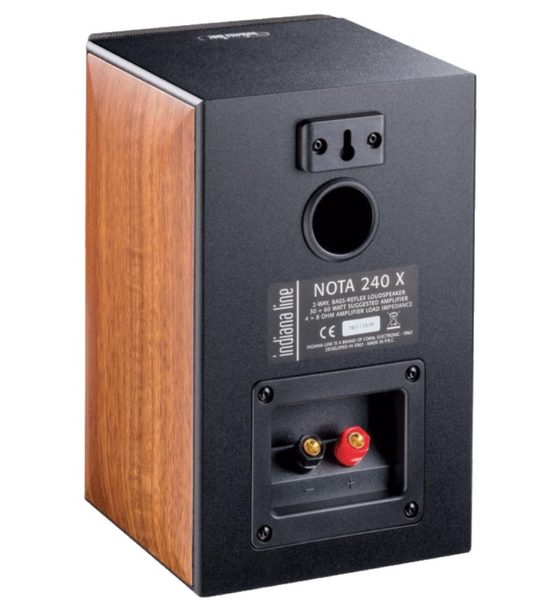 Indiana Line Nota 240 X je regálový model nového radu Nota X pre ktorý sú typické čierno matné ozvučnice s bočnými panelmi v čiernosivom dube a svetlom orechu pre ideálne začlenenie do moderných interiérov. Dvojpásmová konštrukcia osadená vysoko-tónovým reproduktorom s 26mm hodvábnou kalotou a stredo-basovým reproduktorom s PP membránou.