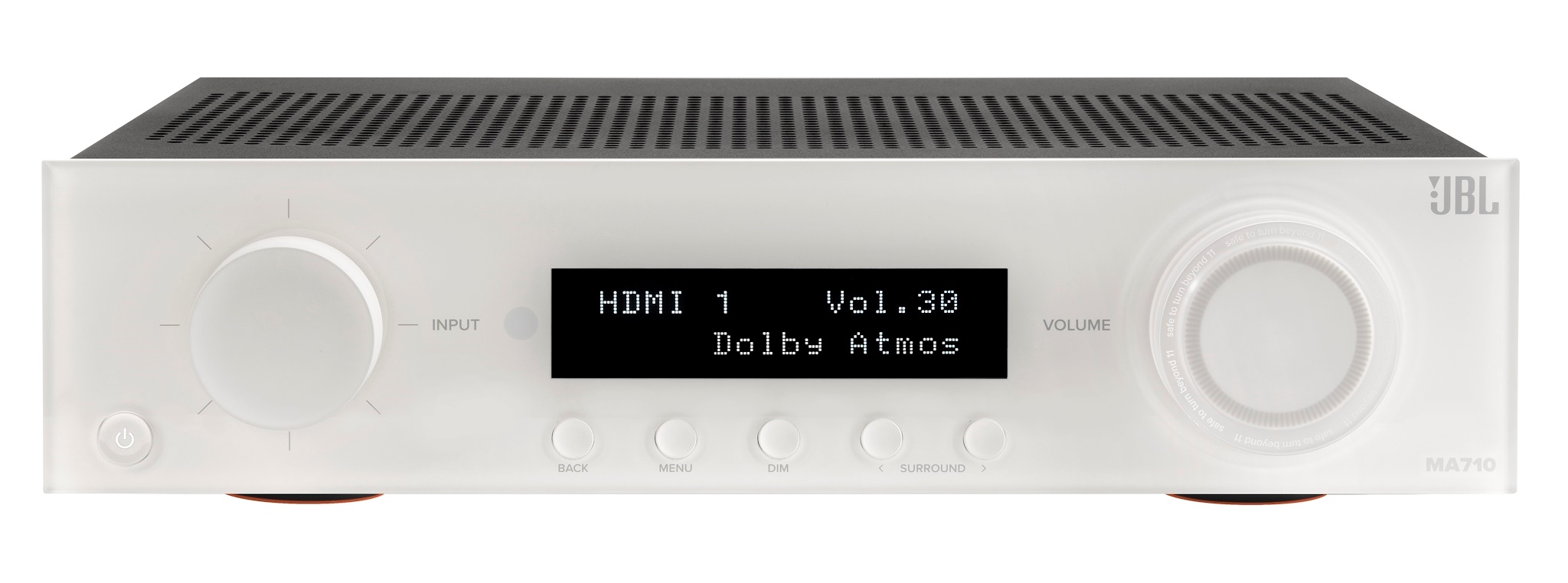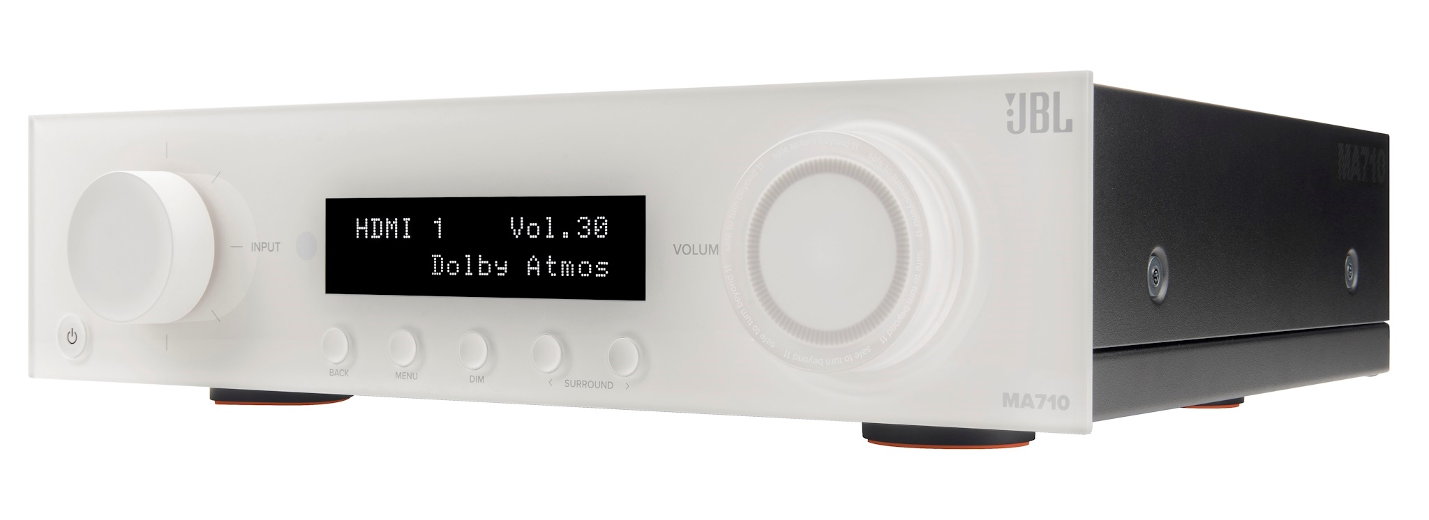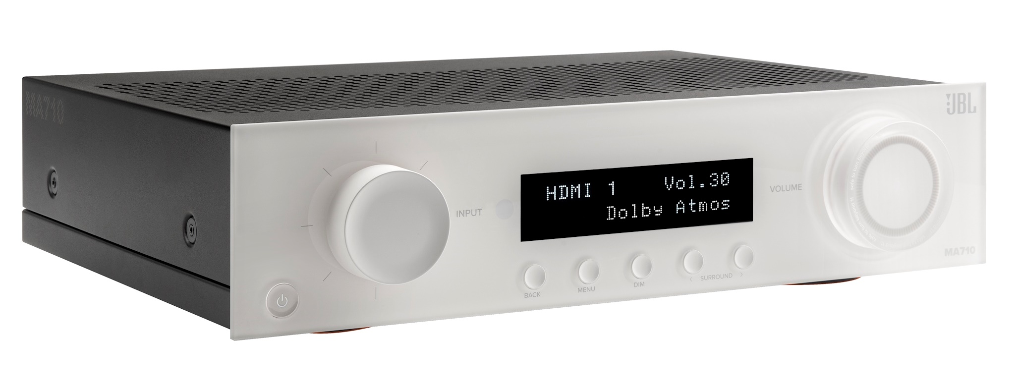 Vďaka natívnemu dekódovaniu Dolby ATMOS aj DTS-X a 24-bitovým D/A prevodníkom s vysokým rozlíšením 192 kHz, dokáže MA710 bežnú obývaciu izbu zmeniť na naozajstný kinosála s výkonným pohlcujúcim zvukom. V závislosti na priestorových možnostiach je možné vytvoriť obklopujúcu zvukovú scénu v systéme so 7.2 kanálmi alebo využiť možnosť presmerovania dvoch kanálov na pozíciu horných ATMOS reproduktorov (systém 5.2.2) , ktoré môžu byť umiestnené ako predné alebo stredné. Tieto kanály dokážu nasmerovať zvuk k poslucháčovi smerom od stropu a vytvoriť tak pohlcujúci zvuk prichádzajúci zo všetkých strán , presne tak, ako to majstri zvuku z popredných filmových štúdií u svojich trhákov zamýšľali. Pre horné dva kanály je možné využiť reproduktory inštalované v stropnej konštrukcii alebo jednoducho zvoliť špeciálne ATMOS moduly JBL STAGE 240H, ktoré stačí položiť na kompatibilné predné reproduktory (napr. JBL STAGE 260F a 280F). Zvuk potom bude z reproduktorov vyžarovaný v uhle k stropu, od ktorého sa zvukové vlny k poslucháčovi odrazia. Je to jednoduché, estetické a nie je nutný žiadny stavebný zásah do stropnej konštrukcie. Sledovanie filmov z Netflix a hranie najnovších hier už nebude nikdy ako predtým.