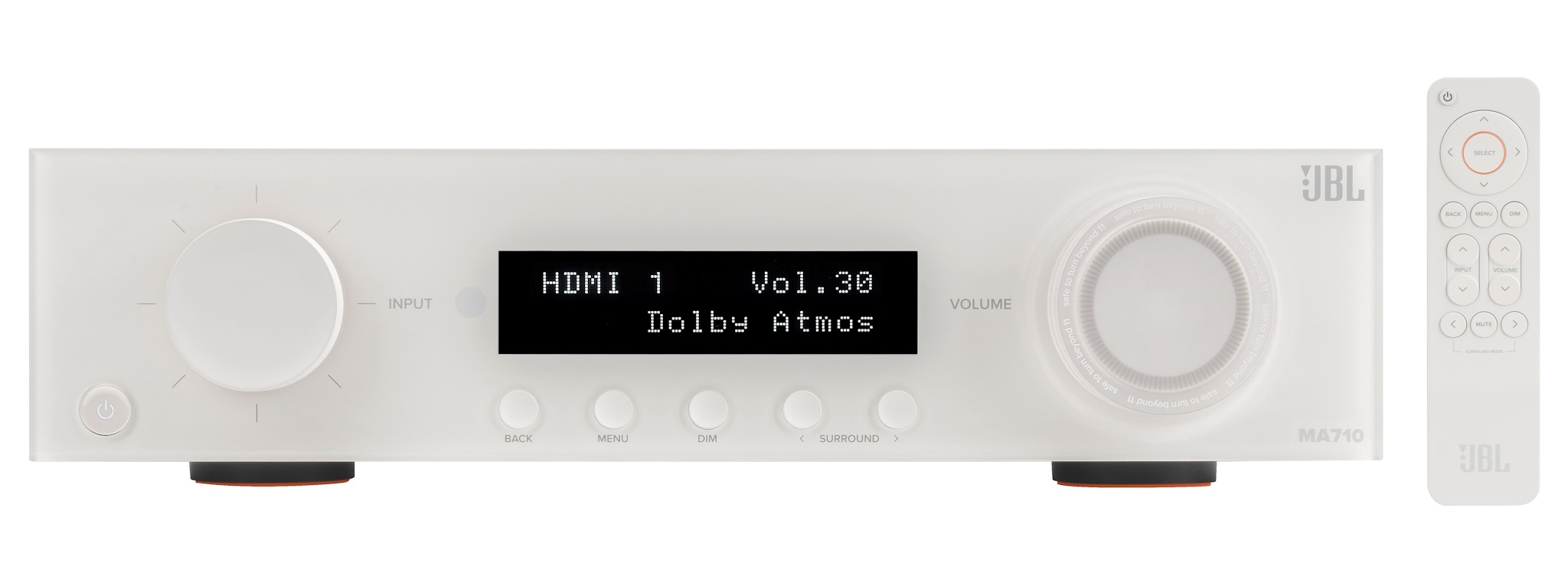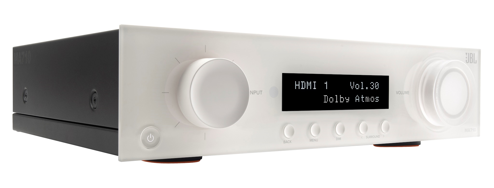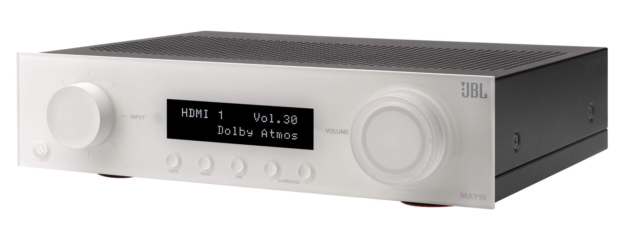 Vďaka natívnemu dekódovaniu Dolby ATMOS aj DTS-X a 24-bitovým D/A prevodníkom s vysokým rozlíšením 192 kHz, dokáže MA710 bežnú obývaciu izbu zmeniť na naozajstný kinosála s výkonným pohlcujúcim zvukom. V závislosti na priestorových možnostiach je možné vytvoriť obklopujúcu zvukovú scénu v systéme so 7.2 kanálmi alebo využiť možnosť presmerovania dvoch kanálov na pozíciu horných ATMOS reproduktorov (systém 5.2.2) , ktoré môžu byť umiestnené ako predné alebo stredné. Tieto kanály dokážu nasmerovať zvuk k poslucháčovi smerom od stropu a vytvoriť tak pohlcujúci zvuk prichádzajúci zo všetkých strán , presne tak, ako to majstri zvuku z popredných filmových štúdií u svojich trhákov zamýšľali. Pre horné dva kanály je možné využiť reproduktory inštalované v stropnej konštrukcii alebo jednoducho zvoliť špeciálne ATMOS moduly JBL STAGE 240H, ktoré stačí položiť na kompatibilné predné reproduktory (napr. JBL STAGE 260F a 280F). Zvuk potom bude z reproduktorov vyžarovaný v uhle k stropu, od ktorého sa zvukové vlny k poslucháčovi odrazia. Je to jednoduché, estetické a nie je nutný žiadny stavebný zásah do stropnej konštrukcie. Sledovanie filmov z Netflix a hranie najnovších hier už nebude nikdy ako predtým.