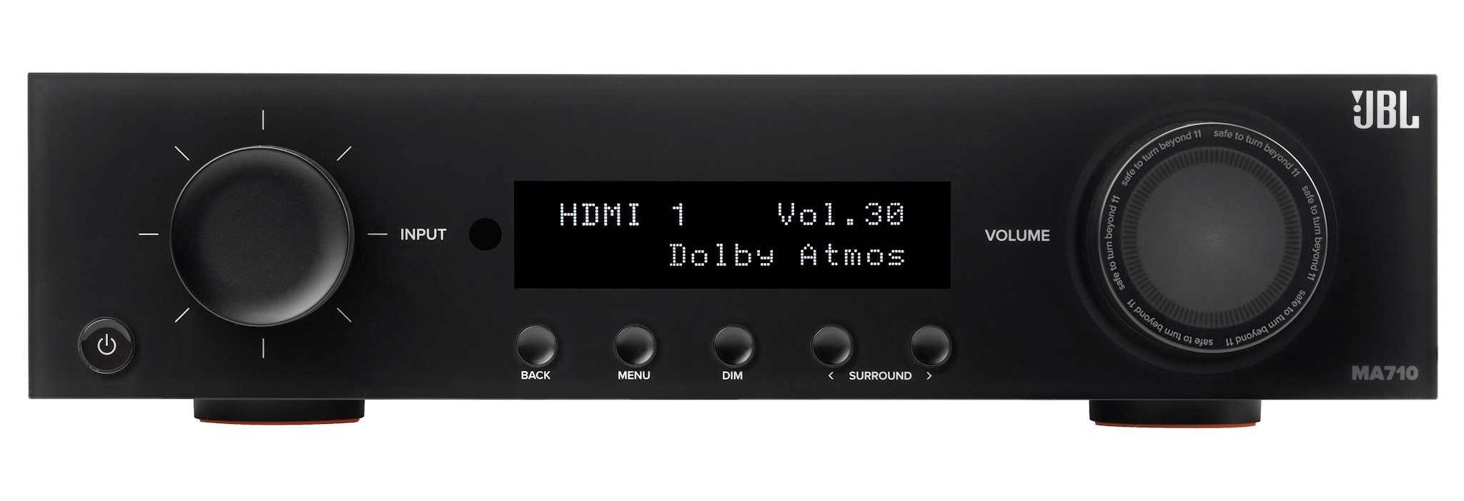 Vďaka natívnemu dekódovaniu Dolby ATMOS aj DTS-X a 24-bitovým D/A prevodníkom s vysokým rozlíšením 192 kHz, dokáže MA710 bežnú obývaciu izbu zmeniť na naozajstný kinosála s výkonným pohlcujúcim zvukom. V závislosti na priestorových možnostiach je možné vytvoriť obklopujúcu zvukovú scénu v systéme so 7.2 kanálmi alebo využiť možnosť presmerovania dvoch kanálov na pozíciu horných ATMOS reproduktorov (systém 5.2.2) , ktoré môžu byť umiestnené ako predné alebo stredné. Tieto kanály dokážu nasmerovať zvuk k poslucháčovi smerom od stropu a vytvoriť tak pohlcujúci zvuk prichádzajúci zo všetkých strán , presne tak, ako to majstri zvuku z popredných filmových štúdií u svojich trhákov zamýšľali. Pre horné dva kanály je možné využiť reproduktory inštalované v stropnej konštrukcii alebo jednoducho zvoliť špeciálne ATMOS moduly JBL STAGE 240H , ktoré stačí položiť na kompatibilné predné reproduktory (napr. JBL STAGE 260F a 280F ). Zvuk potom bude z reproduktorov vyžarovaný v uhle k stropu, od ktorého sa zvukové vlny k poslucháčovi odrazia. Je to jednoduché, estetické a nie je nutný žiadny stavebný zásah do stropnej konštrukcie. Sledovanie filmov z Netflix a hranie najnovších hier už nebude nikdy ako predtým.