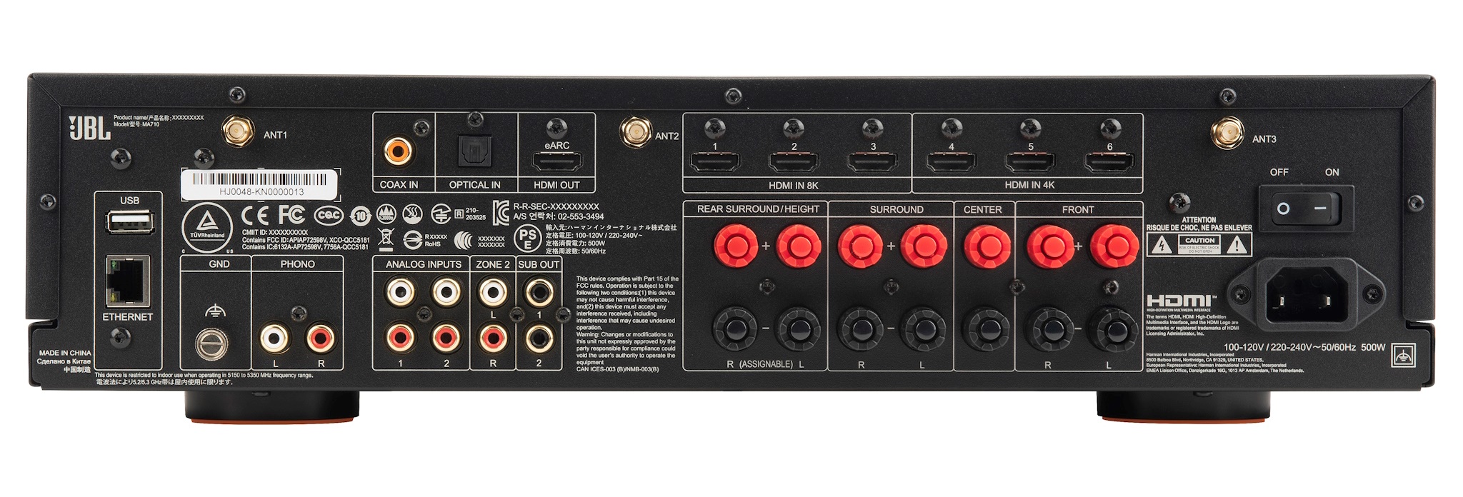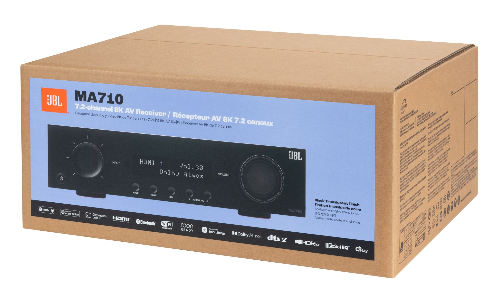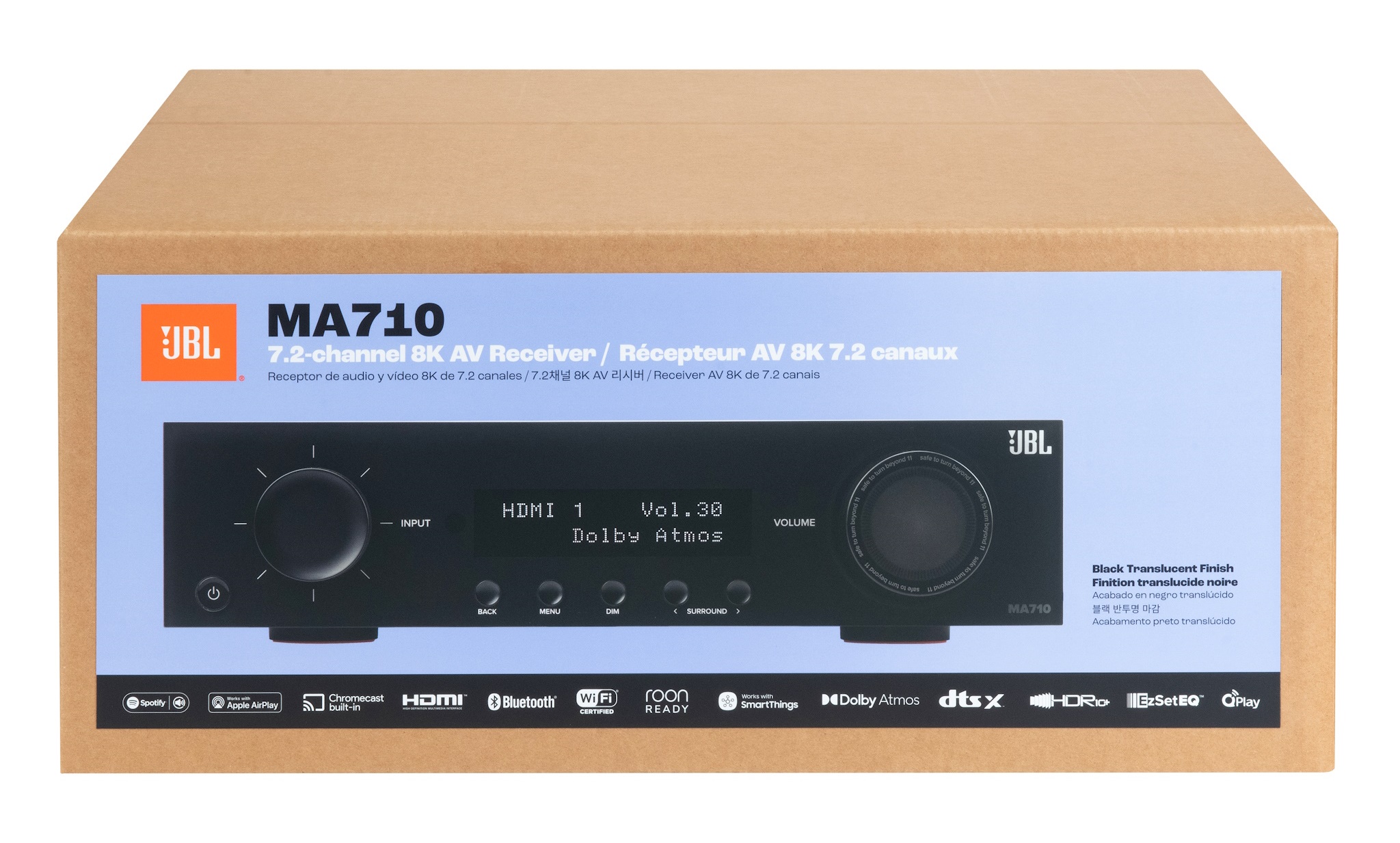 JBL MA710 je prvý model z radu AV zosilňovačov JBL, ktorý ponúka zosilnenie pre 7 kanálov a je kompatibilný s technológiou priestorového zvuku Dolby ATMOS a DTS-X. Podporuje 8K video vrátane formátov s vysokým dynamickým rozsahom kontrastu Dolby Vision a HDR 10+. Majitelia najvýkonnejších herných zariadení ich môžu pripojiť priamo k niektorému zo vstupov HDMI verzie 2.1 s prenosovou rýchlosťou až 40 Gbps. Okrem 8K @ 60 Hz videá ocenia pri hraní najnáročnejších hier aj kompatibilitu 4K s obnovovacou frekvenciou 120 Hz, ktorá zaistí plynulý pohyb UHD obrazu pri gamingu, ultrarýchlom pohybe, športe alebo v akčných filmoch. Herné ambície podčiarkuje aj podpora technológií ALLM, QFT a VRR (Variable refresh rate), pretože o strý obraz je nutný pre vysoko výkonné hry, ktoré z variabilnej obnovovacej frekvencie 120 Hz významne ťažia.
