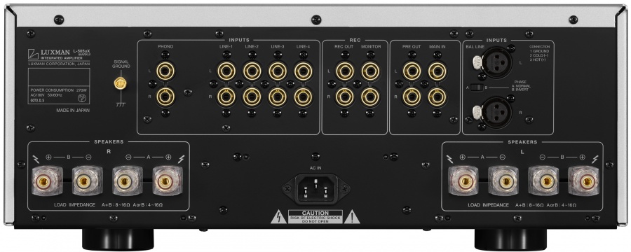 Integrovaný zosilňovač Luxman L-505uX Mark II je bipolárna konštrukcia. Výkonná jednotka každého kanála je osadená dvoma pármi bipolárnych tranzistorov dodávajúcim 100 W + 100 W do (8 Ω), prípadne 150 W + 150 W do (4 Ω) v triede AB, čo je dostatočný výkon na riadenie náročných reproduktorových sústav.