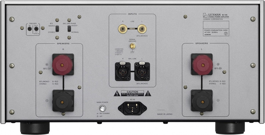 M-10X je koncový zosilňovač novej generácie s novým patentom Luxman a obvodom spätnej väzby „ LIFES “ - Luxman Integrated Feedback Engine System - prinášajúcim v danej kategórii ohromujúcu kvalitu zvuku, kedy vyniká hudobnou hustotou, živosťou, rozsiahlou hudobnou scénou a silou schopnou ovládať mohutné reprosou.