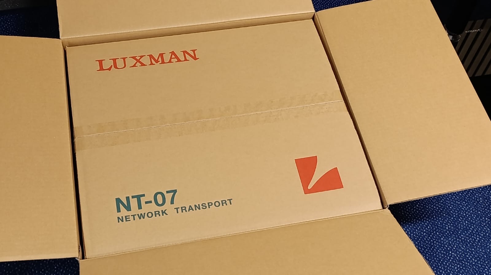 Foto z rozbaľovania NT-07. Dvojité krabice na zabezpečenie prepravy je u Luxmanu samozrejmosť.