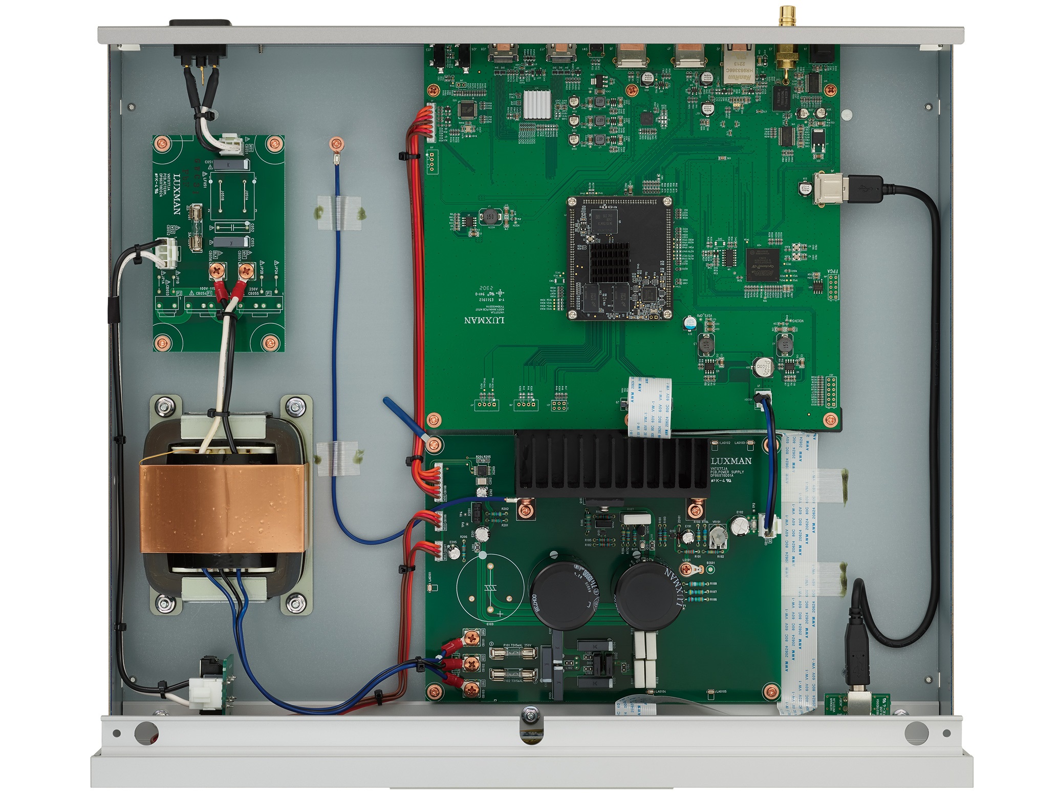 Rovnako ako všetky audio komponenty od LUXMANu, aj NT-07 je navrhnutý s dôrazom na vysokú kvalitu zvuku. Sekcia zdroja napájania je vybavená veľkokapacitným OI transformátorom a dvojicou vlastných filtrov s kapacitou 10 000uF. Tieto vysoko regulované obvody zdroja napájania sa pýšia vysokou úrovňou potlačenia šumu a stabilitou.