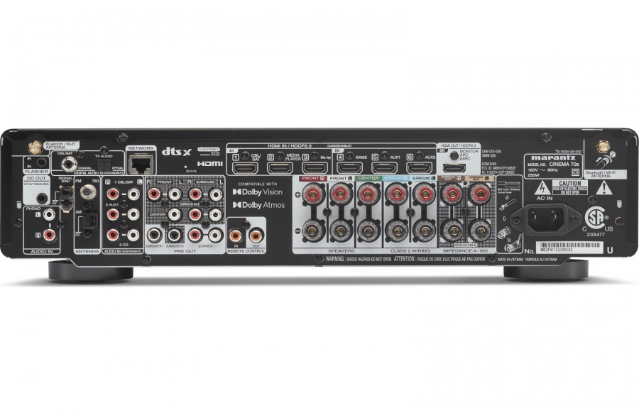 Šesť vstupov HDMI, digitálne, analógové a gramofónové vstupy a výstupy pre reproduktory a predzosilňovače zaisťujú pripojenie prakticky k akýmkoľvek ďalším komponentom.