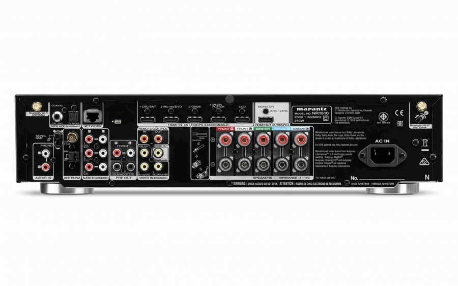 5.2 kanálový AV receiver s podporou videa 4K Ultra HD a zvuku vo vysokom rozlíšení Dolby True HD a DTS HD Master Audio. Aj pri nízkom - kompaktnom prevedení, ktoré nezaberá miesto a disponuje výnimočným priestororovým zvukom. Všetky kanály majú diskrétnymi súčiastkami osadené zosilňovače s veľkou prúdovou záťažou, vysokým výkonom a čistým zvukom.