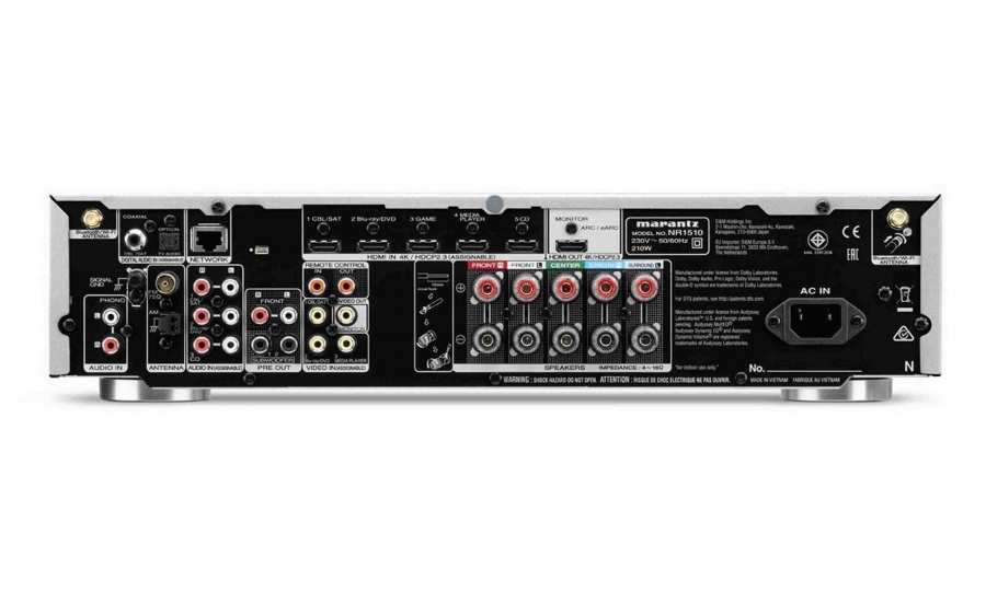 Sieťový 5.2ch AV receiver v nízkom - slimovom prevedení s výkonom 85 W / 6 Ω. Spĺňa HDMI najnovšiu špecifikáciu na prenos 4K Ultra HD a podporuje formáty priestorového zvuku s vysokým rozlíšením Dolby TrueHD a DTS-HD Master Audio. Je kompatibilný s hlasovým ovládaním Amazon Alexa, Google Assistant a Apple Siri. Podporuje vylepšený spätný prenos zvuku z TV prijímača eARC. Dostupné v prevedení Black (čierna) a SG (strieborno-zlatá)