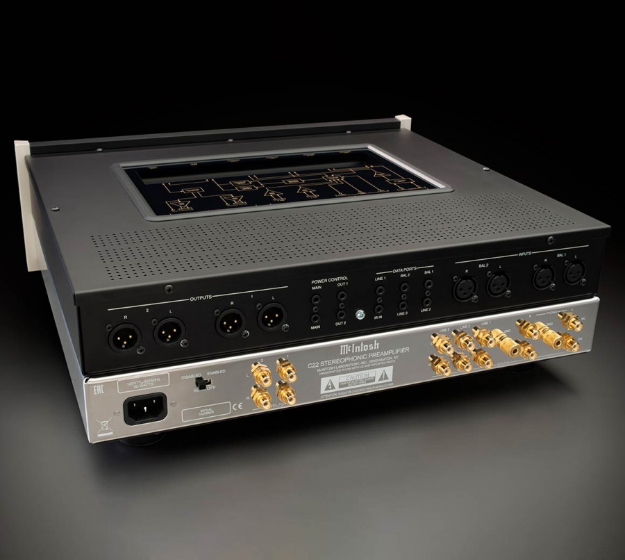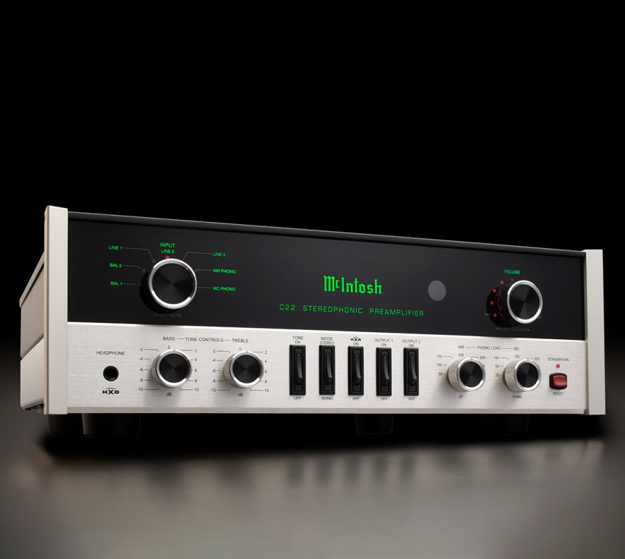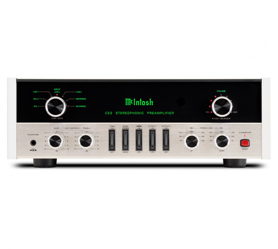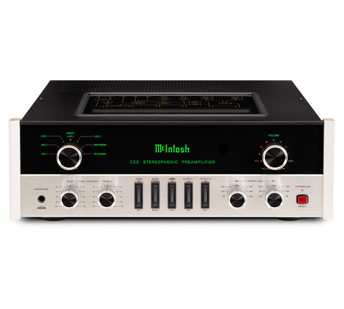 C22 Mk V je vákuový elektrónkový predzosilňovač McIntosh, ktorý má všetky vlastnosti uznávaného modelu C70, ale s podpisovým sklom a hliníkovým dizajnom predného panelu.