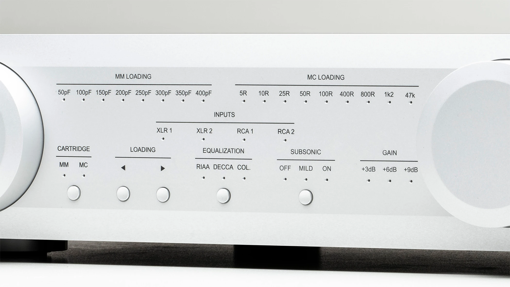 Každý vstup – RCA (nesymetrický) aj XLR (symetrický) – je možné nezávisle prepnúť medzi režimom MM (Moving Magnet) a MC (Moving Coil) a upraviť zaťažovacie parametre. Každý vstup si navyše pamätá svoje vlastné nastavenia. Zosilnenie sa prepína pomocou signálovými relé, teda bez straty kvality signálu. Práve takto vysoké úrovne zosilnenia vyžadujú, aby bol phono predzosilňovač extrémne tichý – a práve tu plne symetrická konštrukcia zohráva kľúčovú úlohu. Vstupná kapacita a impedancia sa prepínajú pomocou JFET tranzistorov – nákladné, ale technicky vysoko sofistikované riešenie, ktoré umožňuje precízne prispôsobenie akejkoľvek prenoske a jej dokonalú integráciu do vášho Hifi systému.