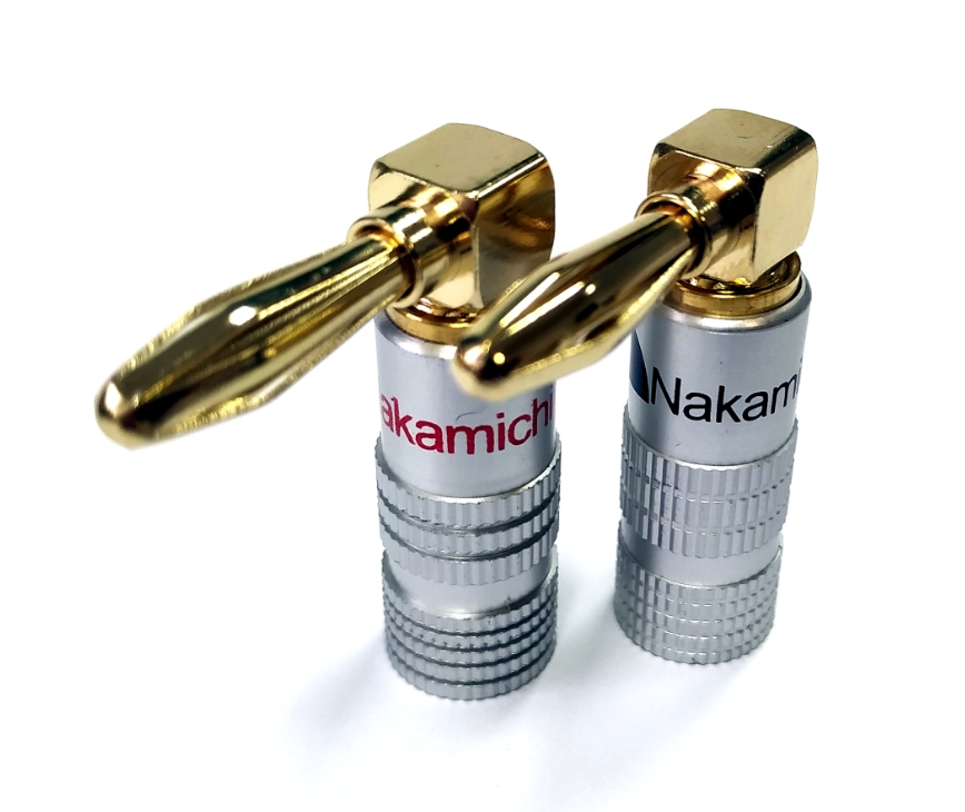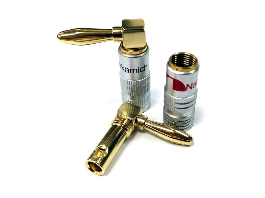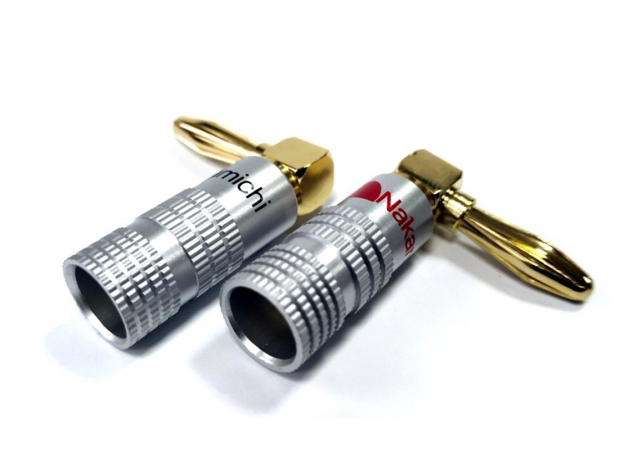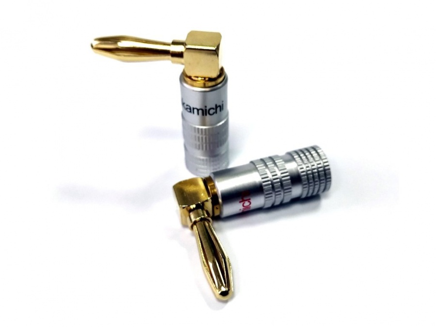 Banánkový, uhlový dutinový konektor pre reproduktorové káble do prierezu 4-5 mm2. |