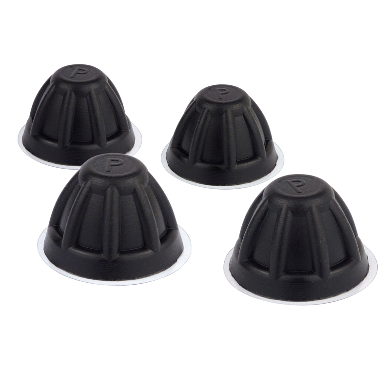 Sada 4 odhmotňovacích nožičiek pre reprosústavy a audio komponenty.
