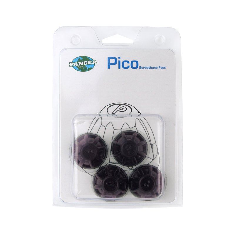 Dizajnéri Pangea Audio spolupracovali s inžiniermi v Sorbothane na vytvorení jedinečného tvaru Pico Feet. Nohy sú stabilné a pevné pod ťarchou zvukových komponentov bez toho, aby boli príliš tuhé na to, aby ohrozili výkon. Najlepšie výsledky dosiahnete, ak použijete nohu s písmenom „P“ smerom dole. Tým je zaručený maximálny kontakt s podložkou.