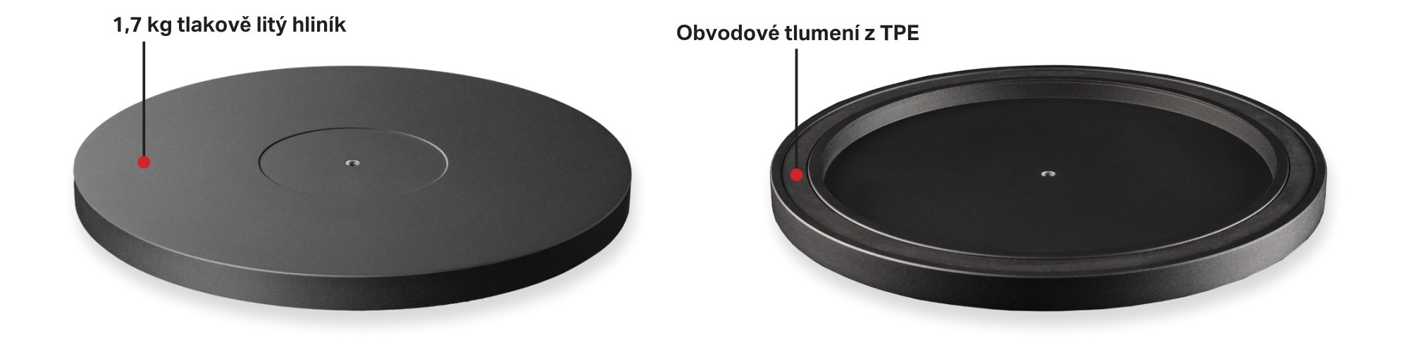 • 1,7 kg ťažký hliníkový tanier s tlmením z termoplastického elastoméru