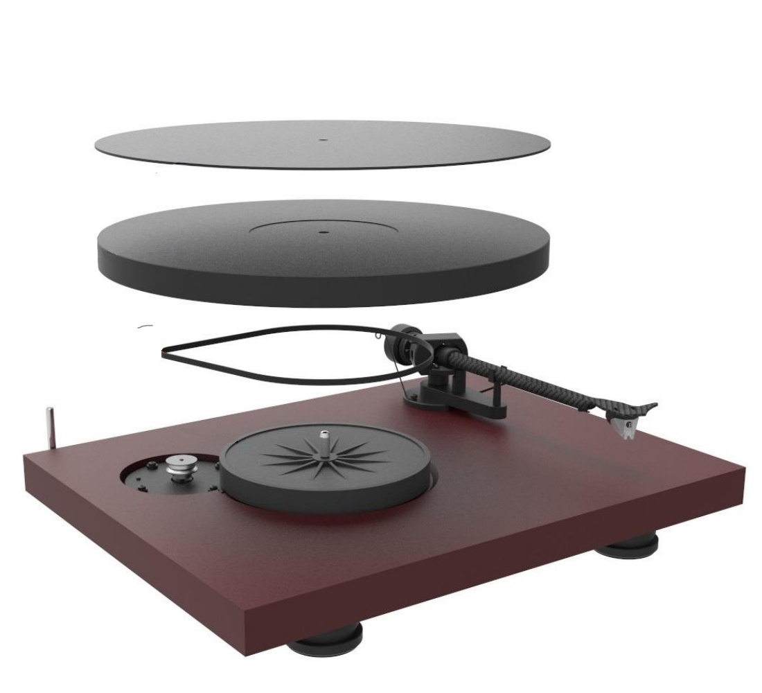 1,7 kg ťažký tanier z tlakovo liateho hliníka prešiel procesom precízneho opracovania a presného vyváženia, aby získal špičkové vlastnosti. Tanier má na vnútornej strane po obvode kruh z TPE (termoplastický elastomér), ktorý pomáha tlmiť prichádzajúce rezonancie a tým minimalizovať kolísanie otáčok. Zároveň je antimagnetický, čo je dôležitý aspekt pri používaní prenosiek typu MC. MC prenoska je zároveň dôležitou podmienkou pre možnosť upgrade na technológiu symetrického zapojenia True Balanced Connection. Ešte vyššia úroveň tlmenia a stability predstavuje prítlačné závažie Record Puck E, ktoré je možné zakúpiť ako samostatné príslušenstvo.