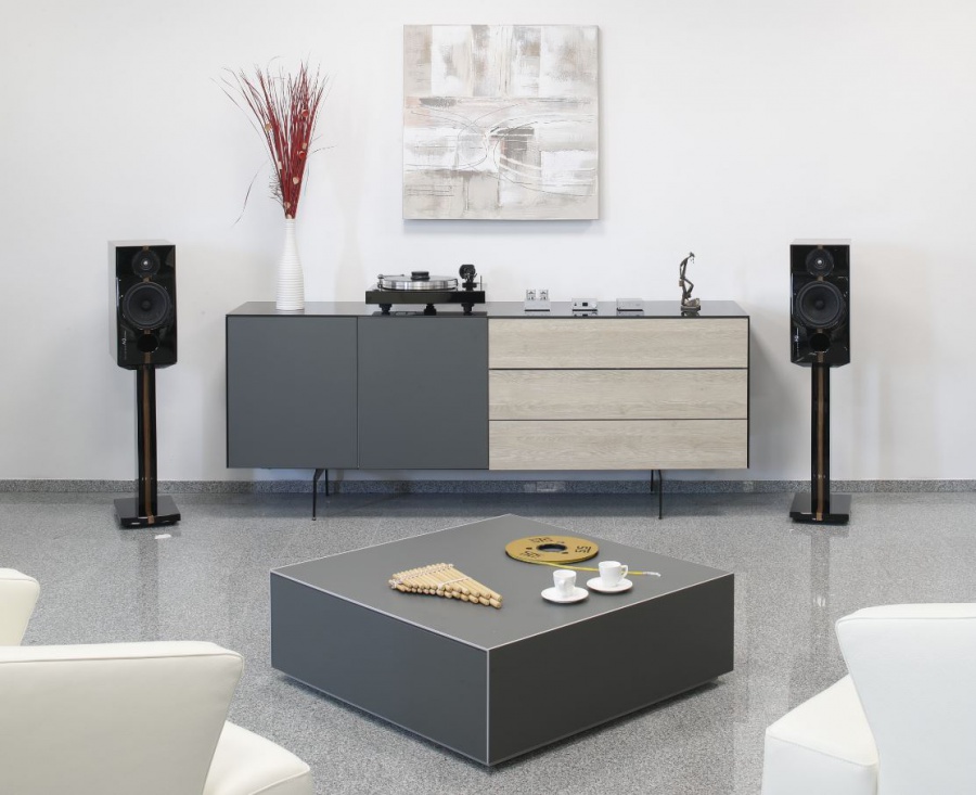 Špeciálna príplatková edícia z koreňového (burlového) orecha. Podložené antivibračnou doskou IsoAcoustic. Na prezentáciu v PPHiFi.