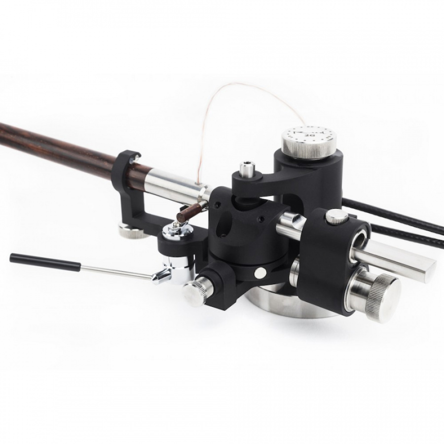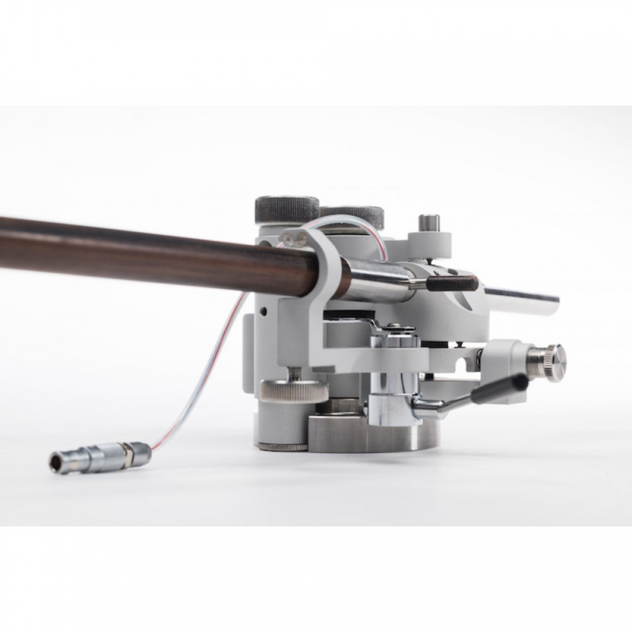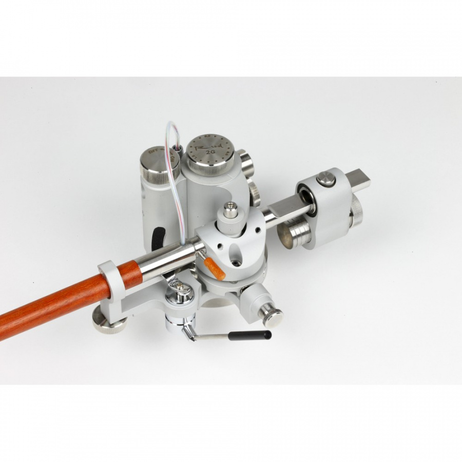 Gramofónové ramienko priame, pevná hlavička pre prenosky s 1/2″ uchytením, ťažké protizávažie, efektívna dĺžka 9,5″.