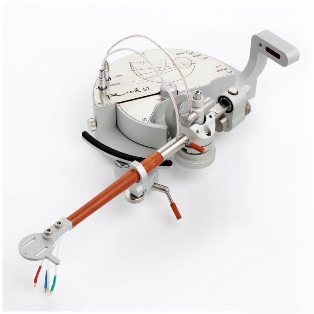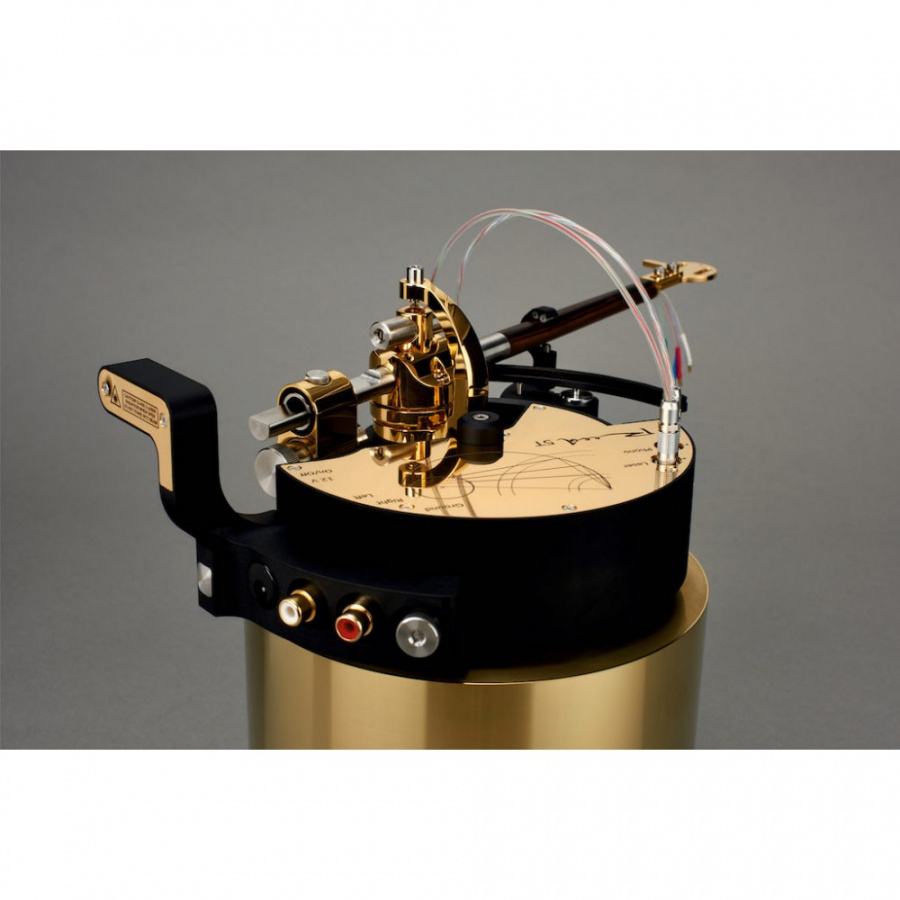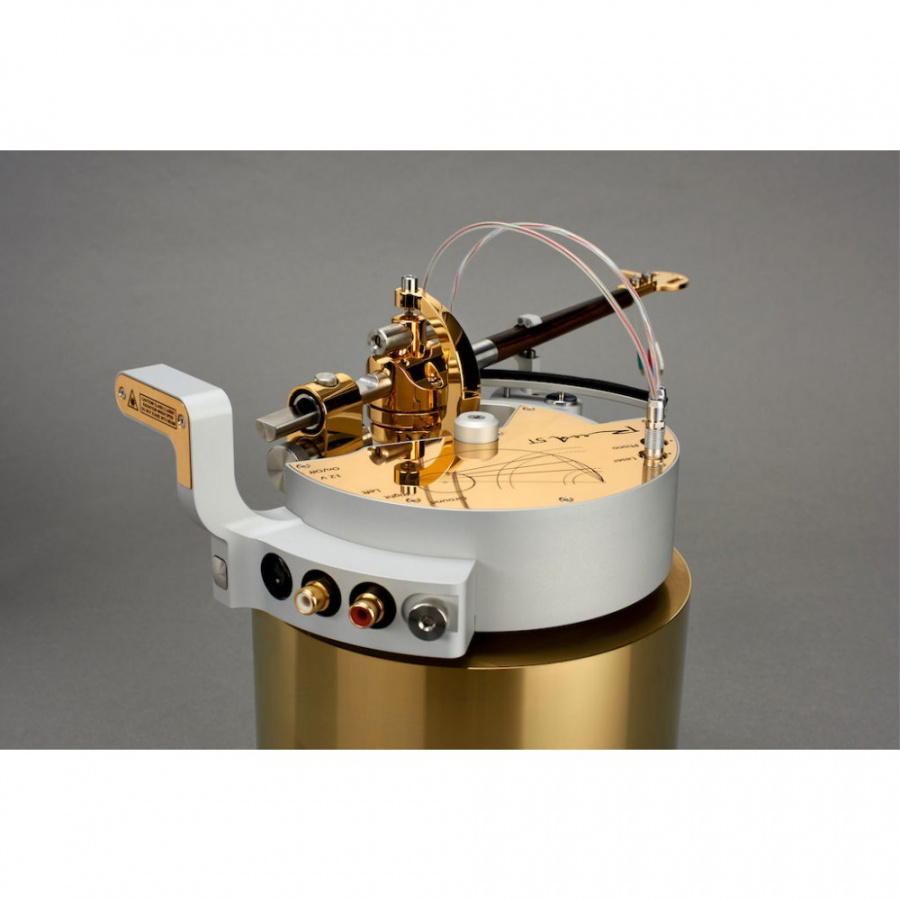 Gramofónové rameno TANGENCIÁLNE, pevná hlavička pre prenosky s 1/2″ uchytením, ťažké protizávažie, efektívna dĺžka 9,5″. S prípojným káblom. Napájanie 12V.