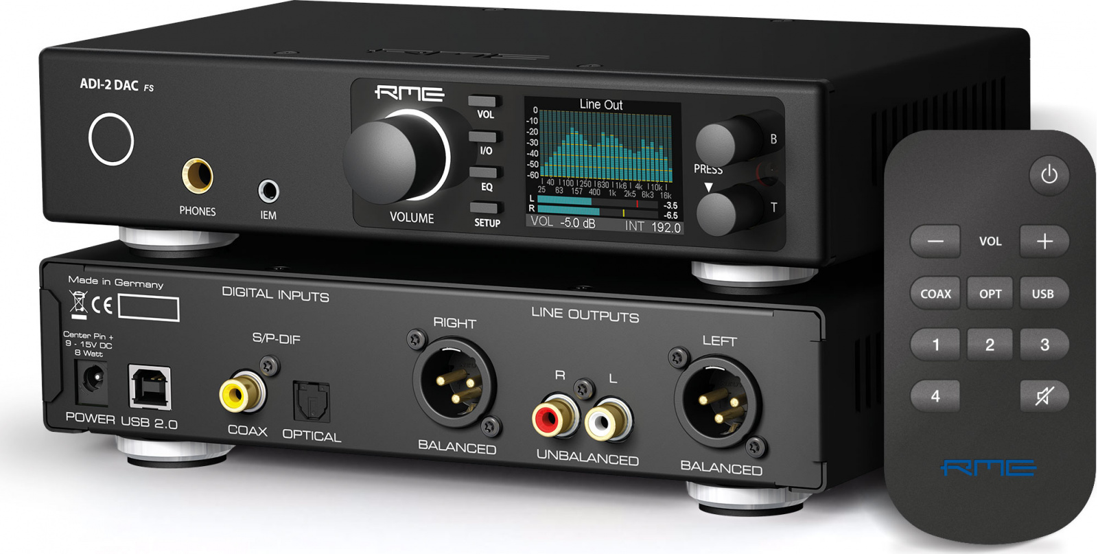 RME ADI-2 DAC FS maximálne presný PCM/DSD 768 kHz DA prevodník. Nemecký RME je už viac ako 20 rokov popredným výrobcom digitálneho audia na profesionálne a štúdiové spracovanie zvuku. V posledných rokoch sa ale rovnako úspešným stavajú v segmente Hi-Fi a high-endu. Po vydarených prevodníkoch akými boli ADI-2 Pro a ADI-2 Pro Anniversary prichádzajú s novinkou ADI-2 DAC FS.