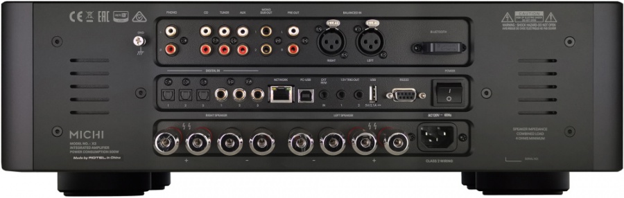 Michi X3 je integrovaný zosilňovač v triede A/B s toroidnými transformátormi s reálnym výkonom 350W pri 4Ω na jeden kanál. V stereu sa teda v danej cene dostávame na bezkonkurenčných 700W pri 4Ω.