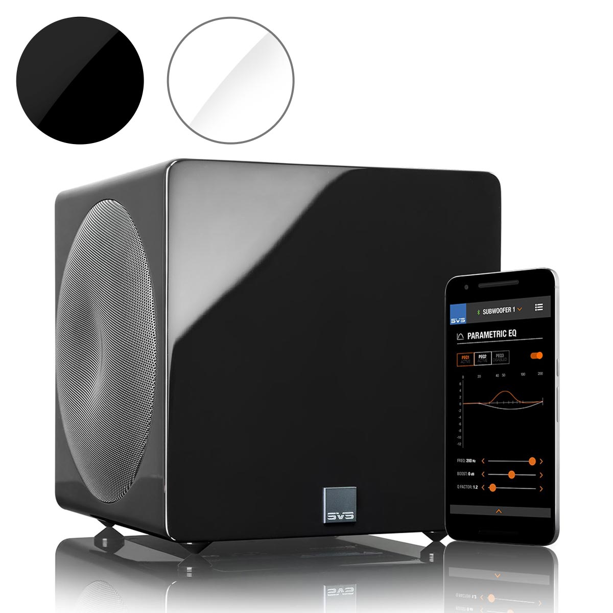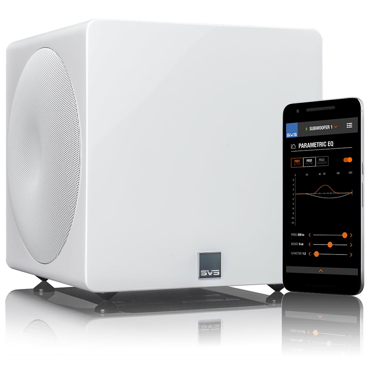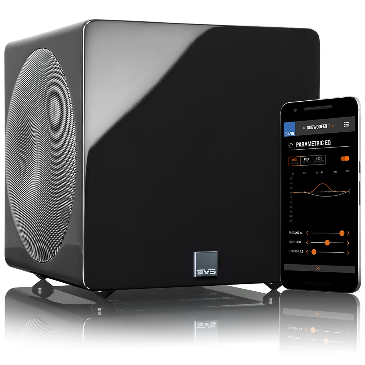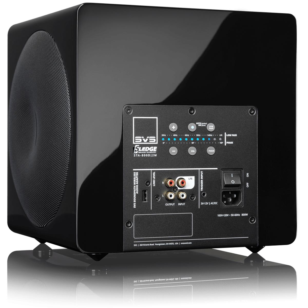 O energiu sa stará zosilňovač Sledge STA-800D2 (800 W RMS, 2500+ W špičkovo) s diskrétnymi MOSFET tranzistormi. Pokročilý DSP Analog Devices (50 MHz) umožňuje jemné ladenie, vlastné krivky odozvy a ovládanie cez aplikáciu SVS Subwoofer DSP App pre chytré telefóny.