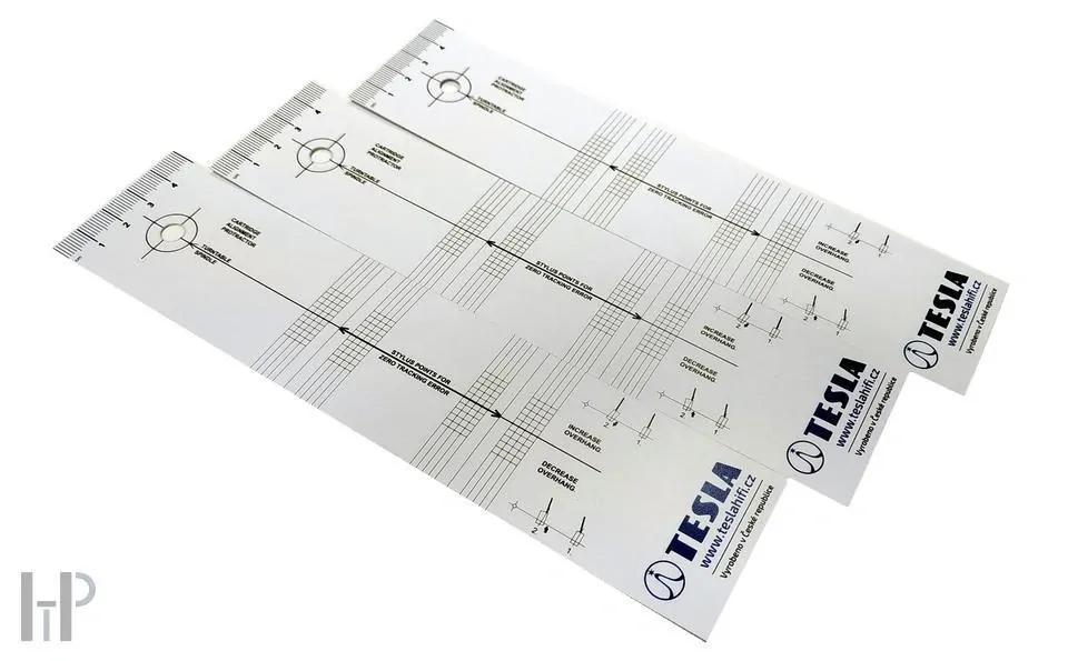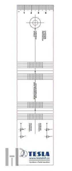 Šablóna pre správne nastavenie offsetového uhla a zvislého uhla prenosky.