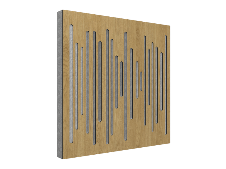 Wavewood Diffuser Ultra simuluje sekvencie QRD a MLS. Elimináciou ozvien a kmitania udržuje živý a jasný zvuk. Esteticky ladí s absorpčným panelom Wavewood, čím umožňuje kombináciu absorpčnej a difúznej verzie bez vizuálnych rozdielov.